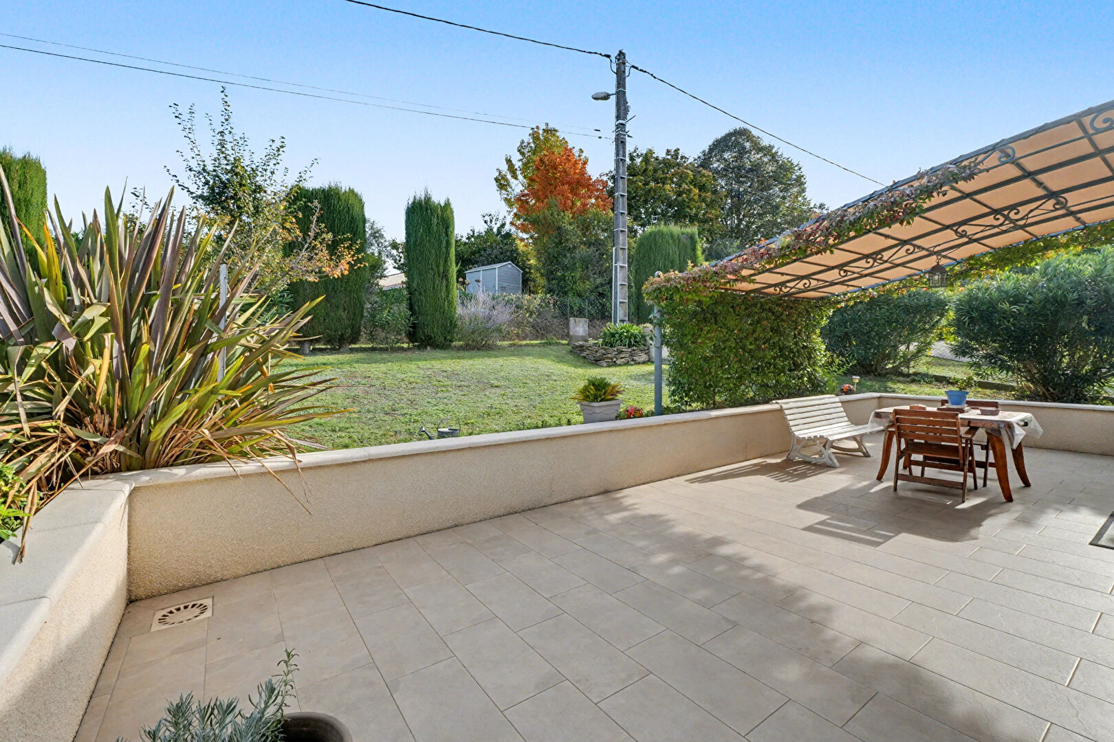 Elle se compose d'une lumineuse pièce de vie avec insert, accès à la véranda et la terrasse, d'une cuisine aménagée et équipée et d'un WC.