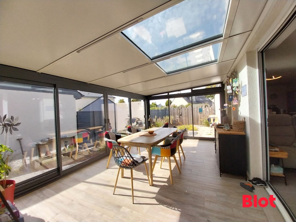 Elle se compose d'une spacieuse entrée, d'une pièce de vie baignée de lumière avec cuisine aménagée et équipée, prolongée par une agréable véranda qui apporte un véritable atout à l'espace de vie.