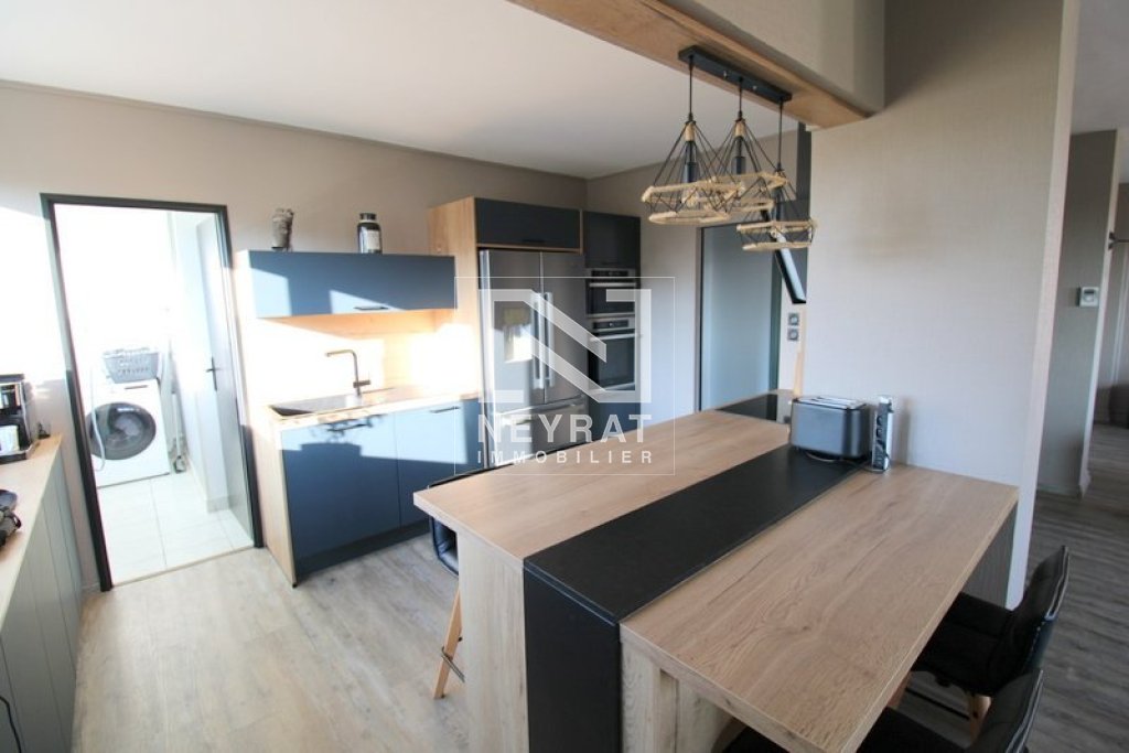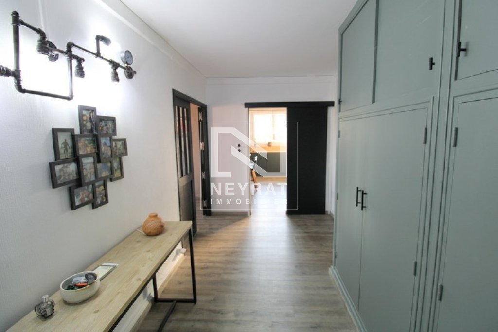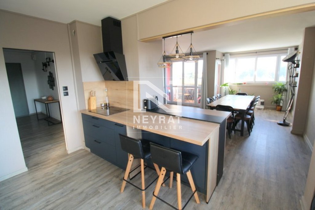 EXCLUSIVITE NEYRAT!!! Appartement de Type 5 situé dans un immeuble entièrement rénové avec ascenseur (Isolation par l'extérieur, ravalement de façade) comprenant une entrée, un salon / salle à manger de plus de 44 m2 avec cuisine ouverte et équipée, une buanderie, un couloir, un wc, un placard, une salle de bains, trois chambres, un balcon, une cave et deux emplacements de parkings privatifs.