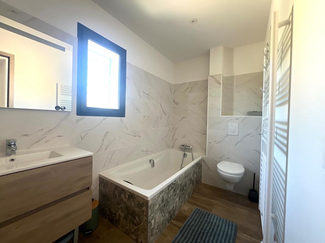 A l'étage : trois chambres, une salle de bain avec WC .Cette jolie maison récente avec des prestations de qualité ( menuiseries en alu salon séjour, climatisation réversible, cuisine contemporaine , chauffe eau thermodynamique) sera vous séduire et vous apporter tout le confort souhaité.