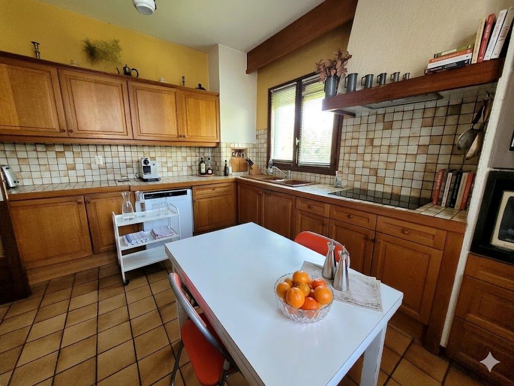 La maison est édifiée sur un sous-sol total ( dont garage et cave) carrelé idéal pour stockage ou pour l aménagement d une cuisine d 'été pour profiter pleinement de la piscine et bénéficie d'un chauffage central.