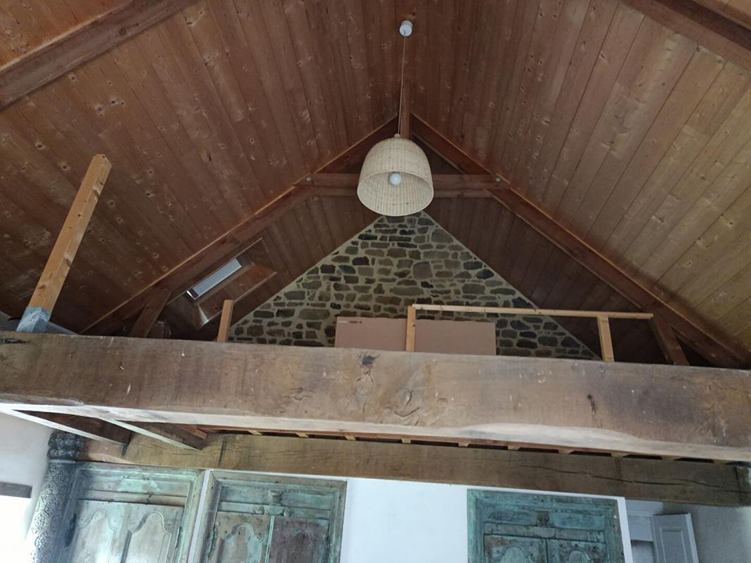 maison d'habitation en campagne dont la répartition est la suivante : petite entrée, cuisine aménagée et équipée ouverte sur salon-salle à manger, chambre avec salle d'eau et wc et mezzanine au dessus, buanderie, chaufferie, wc au RDC ; à l'étage : palier, 2 chambres, salle d'eau, wc ; appentis en pignon