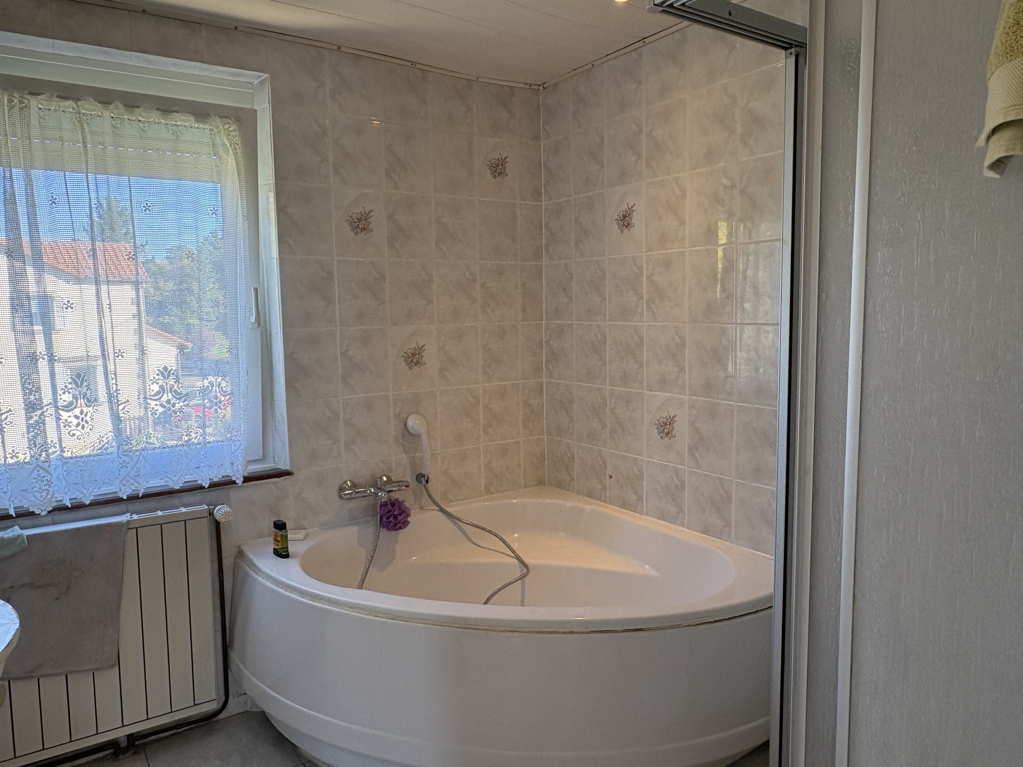A l'étage, 3 chambres dont 2 avec balcon + une SDB avec baignoire et douche.