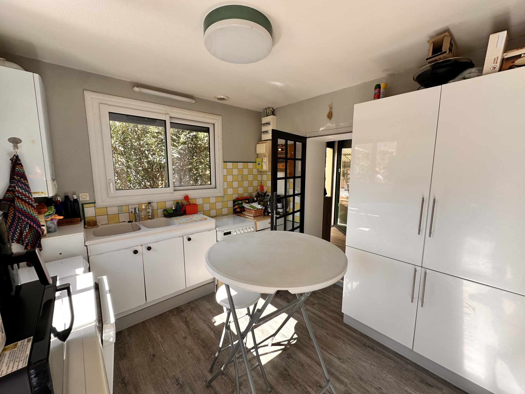 Au rez-de-chaussée, vous découvrirez un grand salon-séjour, une salle de bain, un wc indépendant et une cuisine ouverte sur la terrasse.