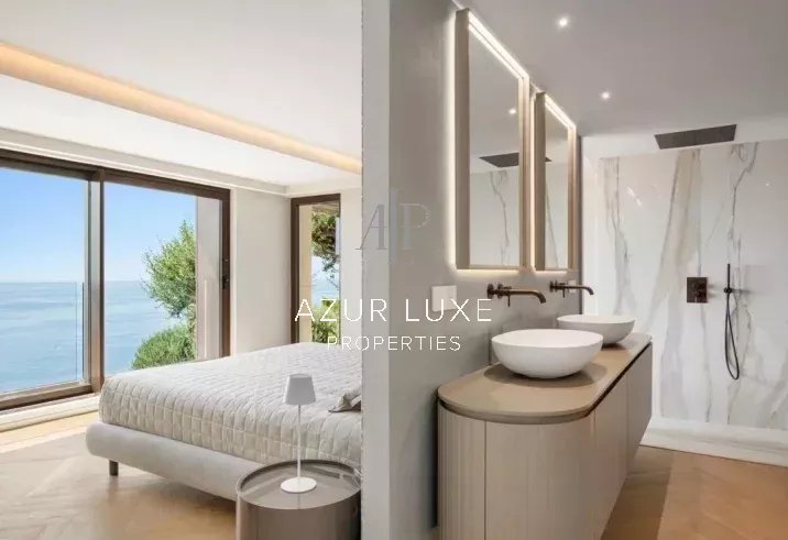 Organisée sur 3 étages avec ascenseur, chaque espace a été dimensionné pour bénéficier d'une vue imprenable sur la mer et le Cap Martin depuis chaque pièce ou terrasse.