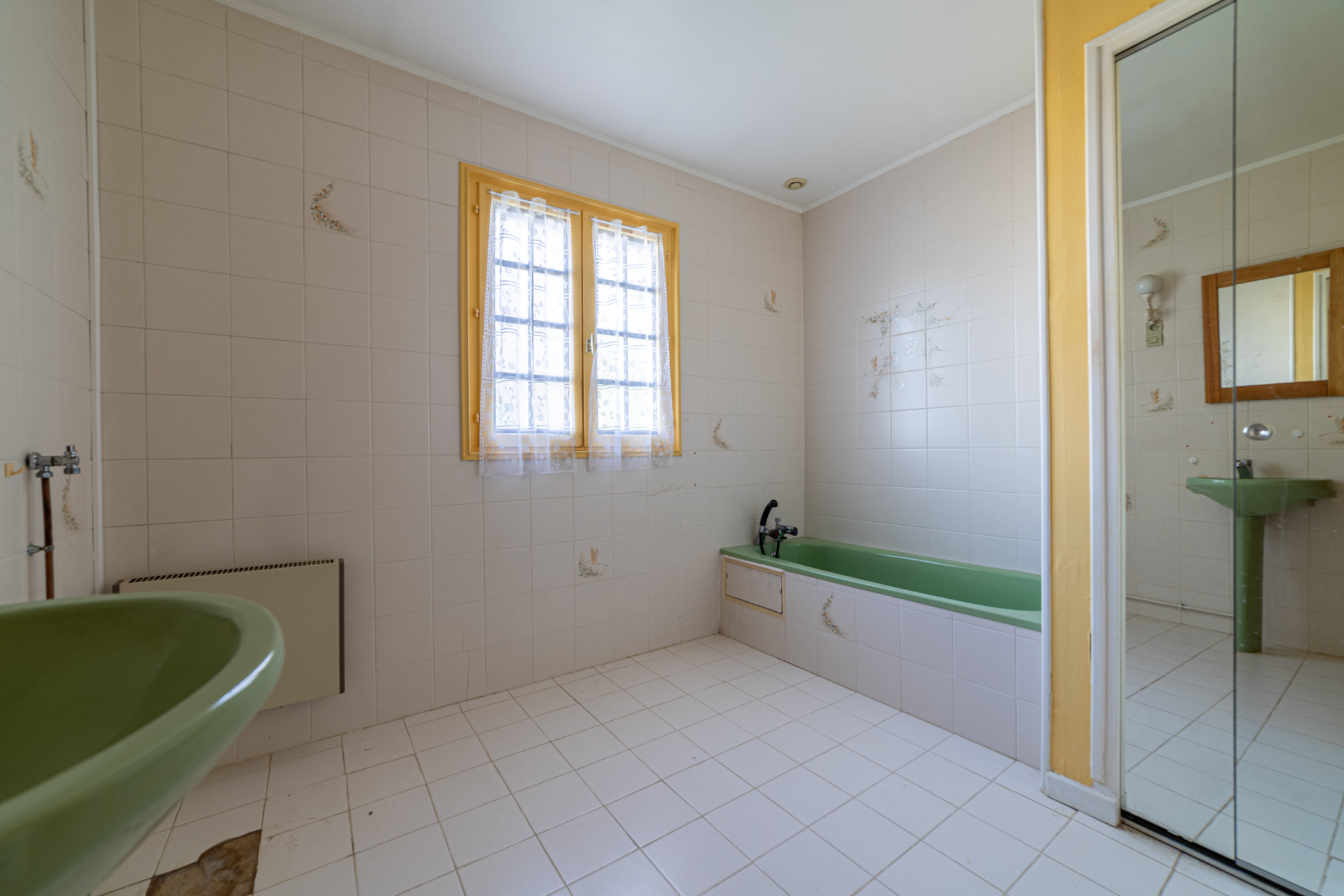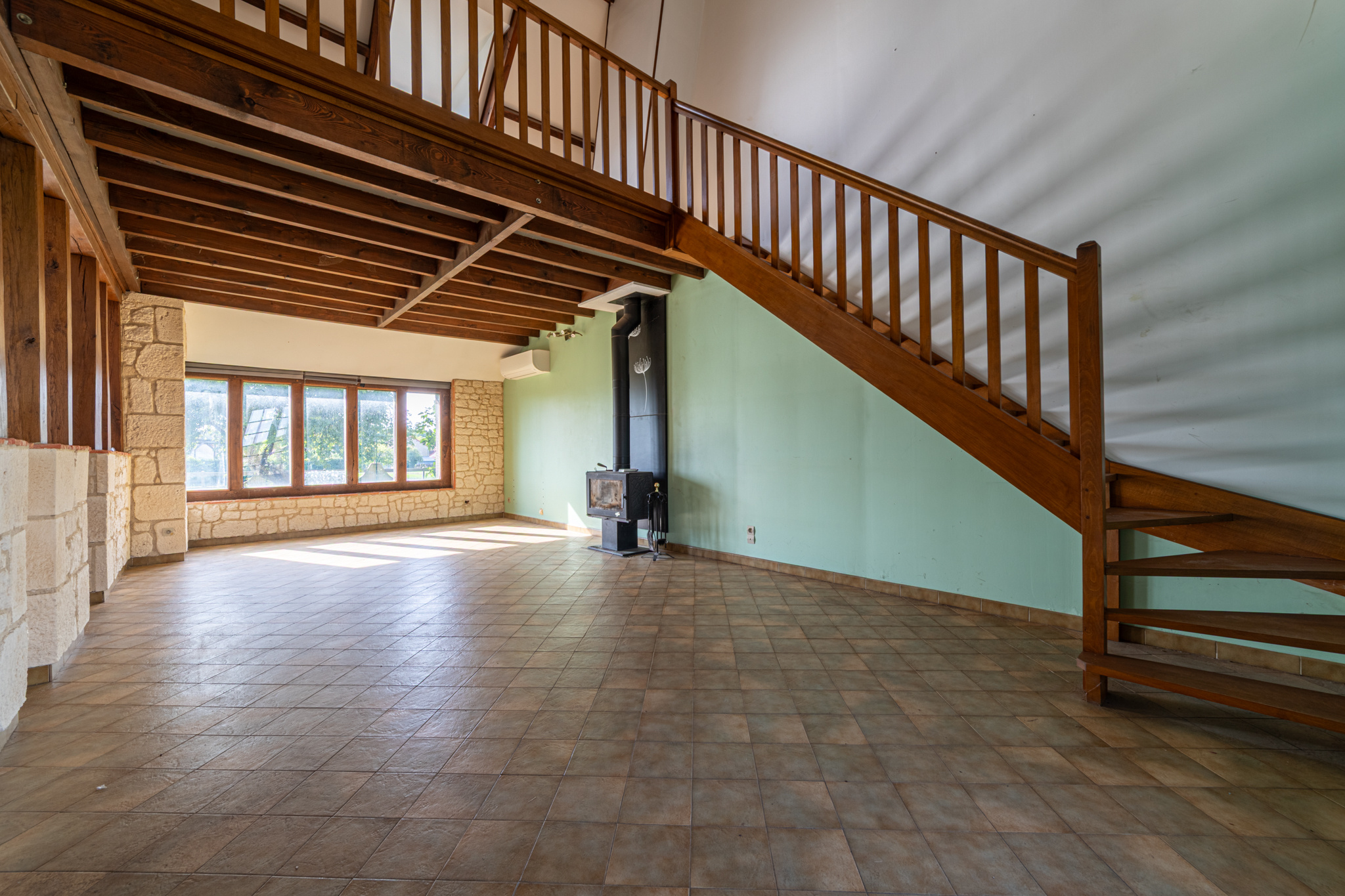 Assainissement fosse septique, huisserie en bois double vitrage, clim et poêle à bois.