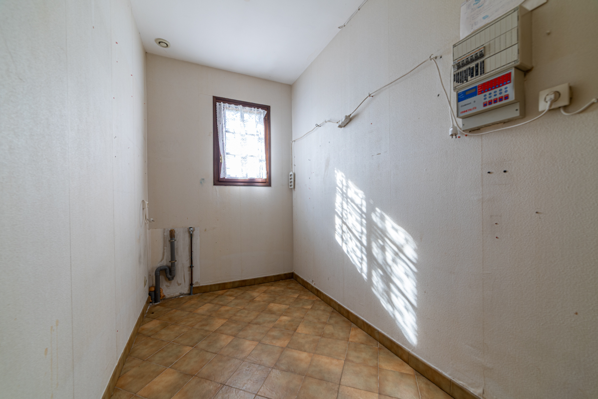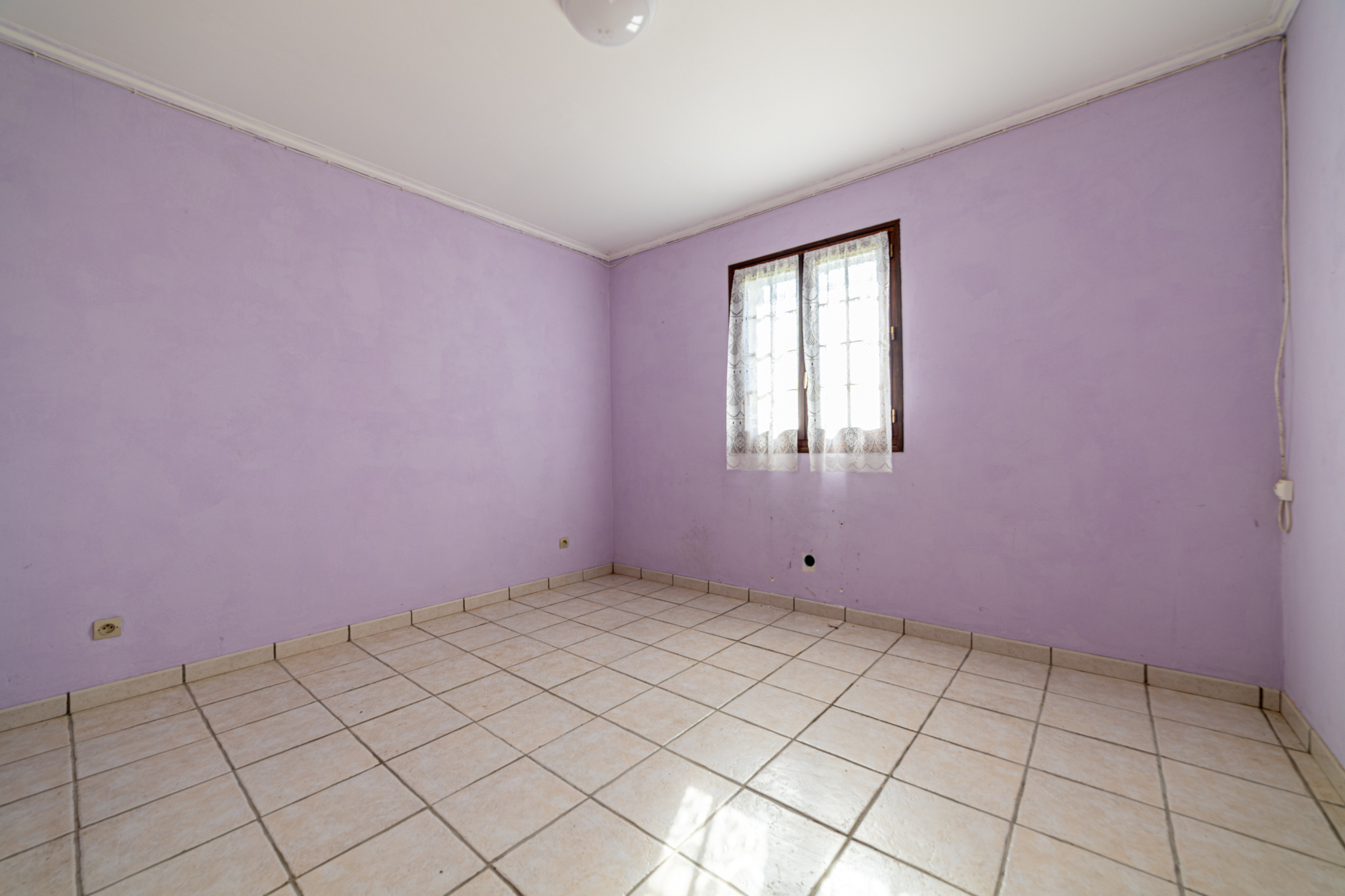 Cette grande maison indépendante offre au rez de chaussée une entrée, un grand salon avec mezzanine ouvert sur la cuisine aménagée, une salle de bain avec douche, deux chambres, WC et une buanderie ou bureau.