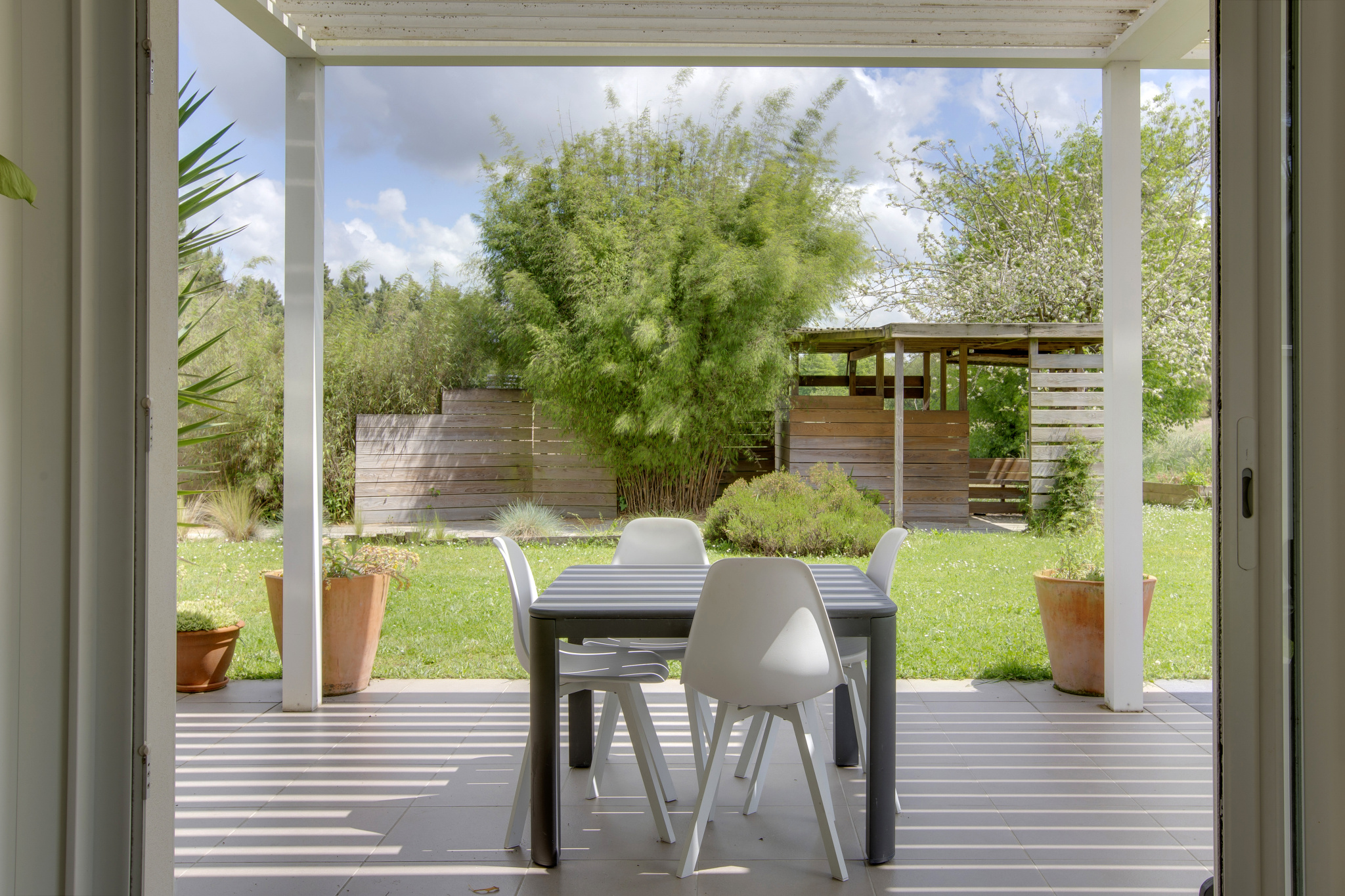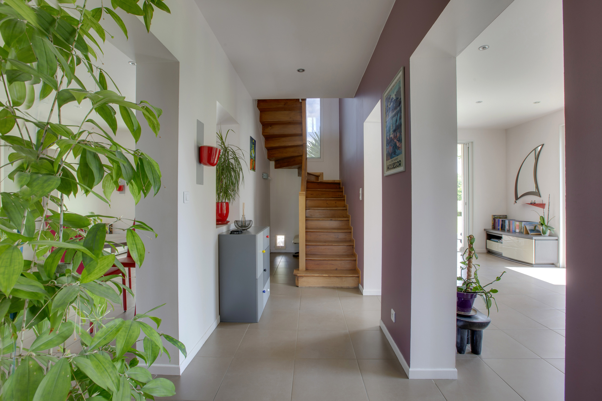 Édifiée sur un terrain plat, arboré et piscinable de 1 188 m2, elle offre un cadre de vie paisible tourné vers la nature, agrémenté d'une belle terrasse abritée.