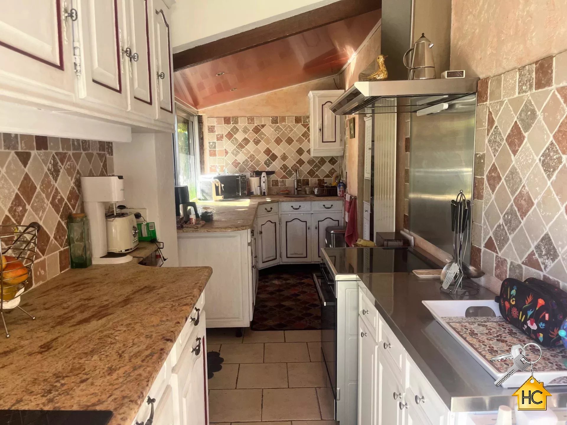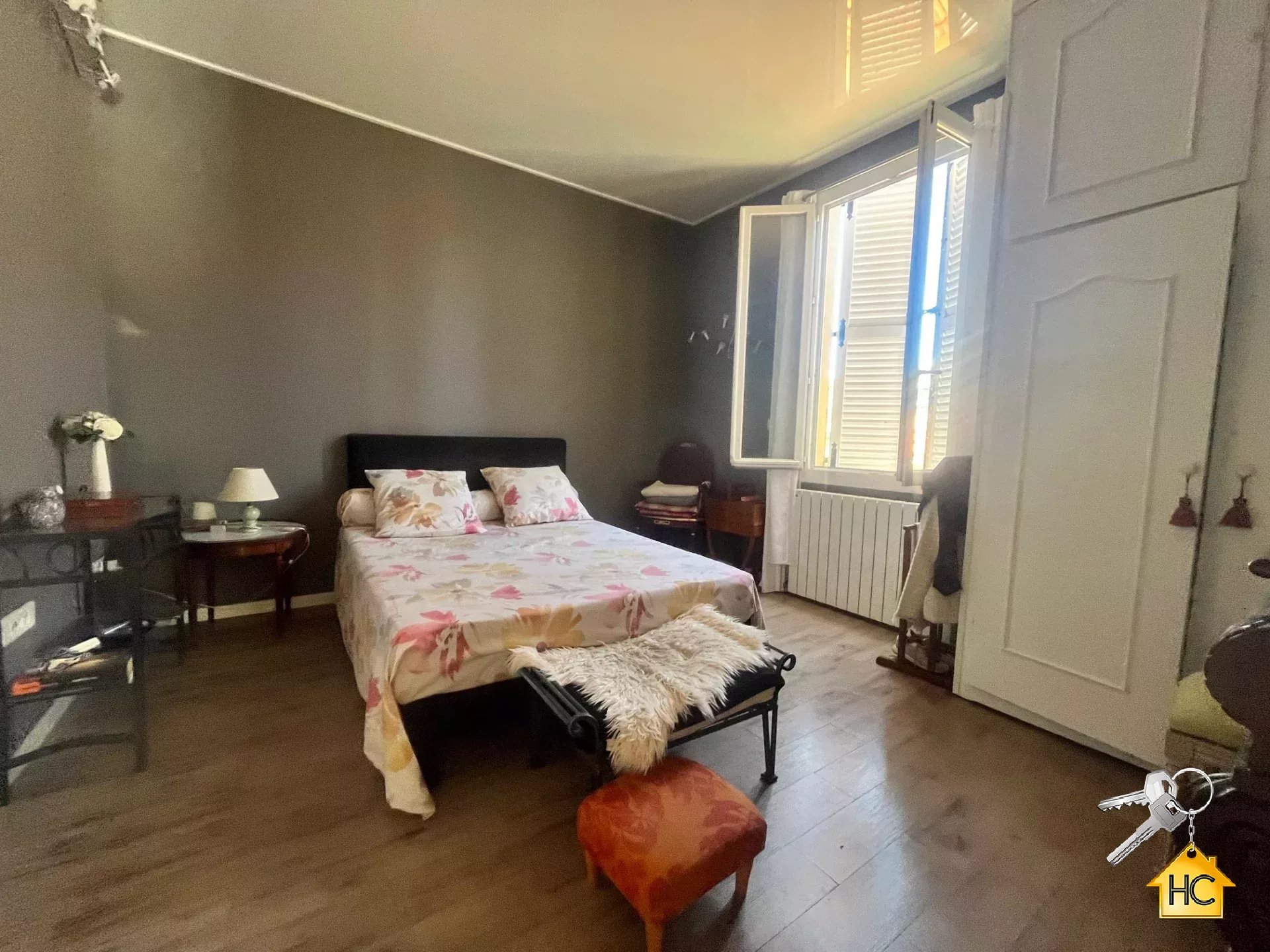 exposé sud ,il se compose d'un séjour ouvrant sur terrasse d'environ 30m2, une cuisine, 2 chambres, un bureau, une salle de bains et une salle de douches, 2 toilettes, un grand garage. Un autre appartement de 2