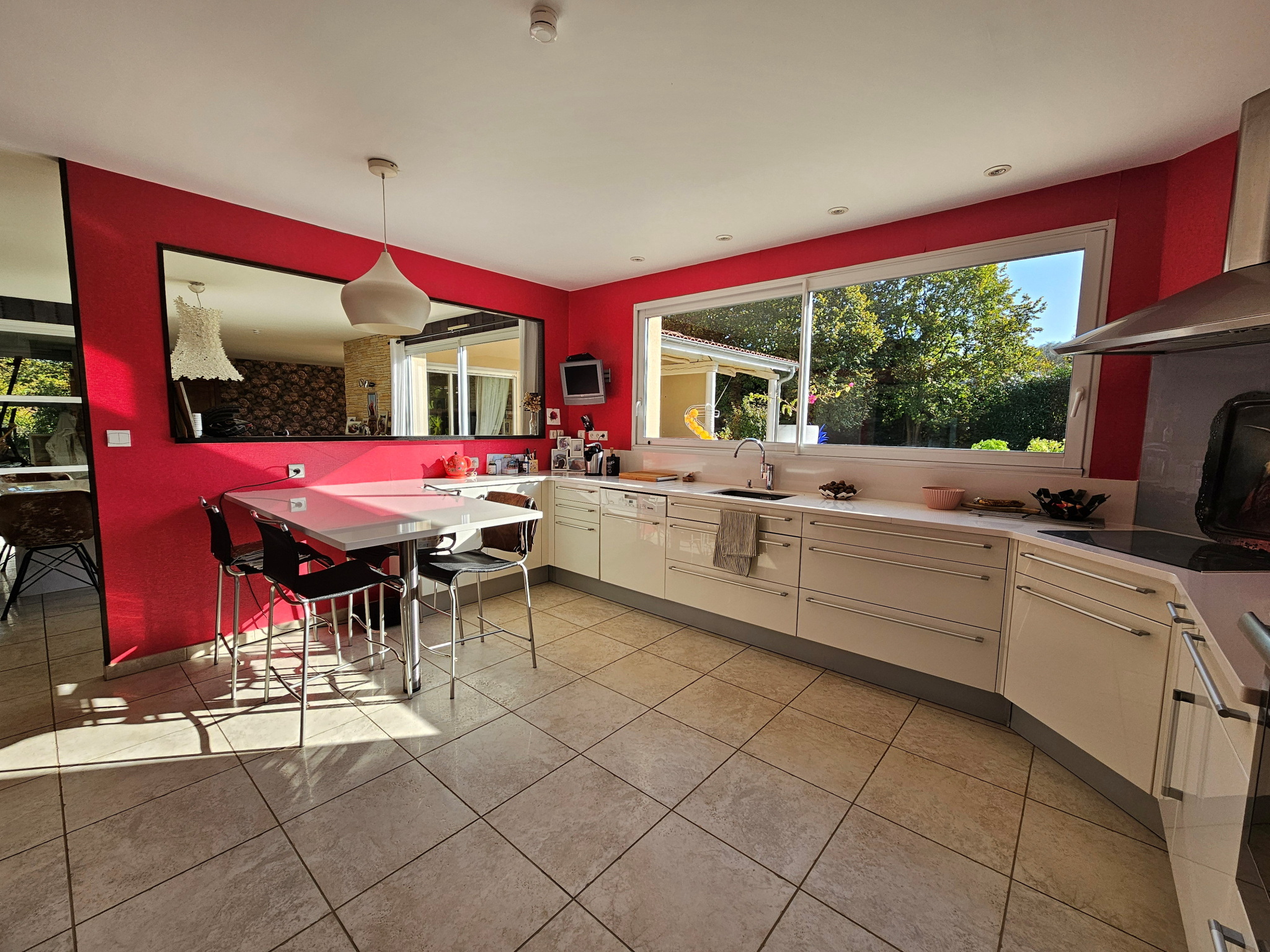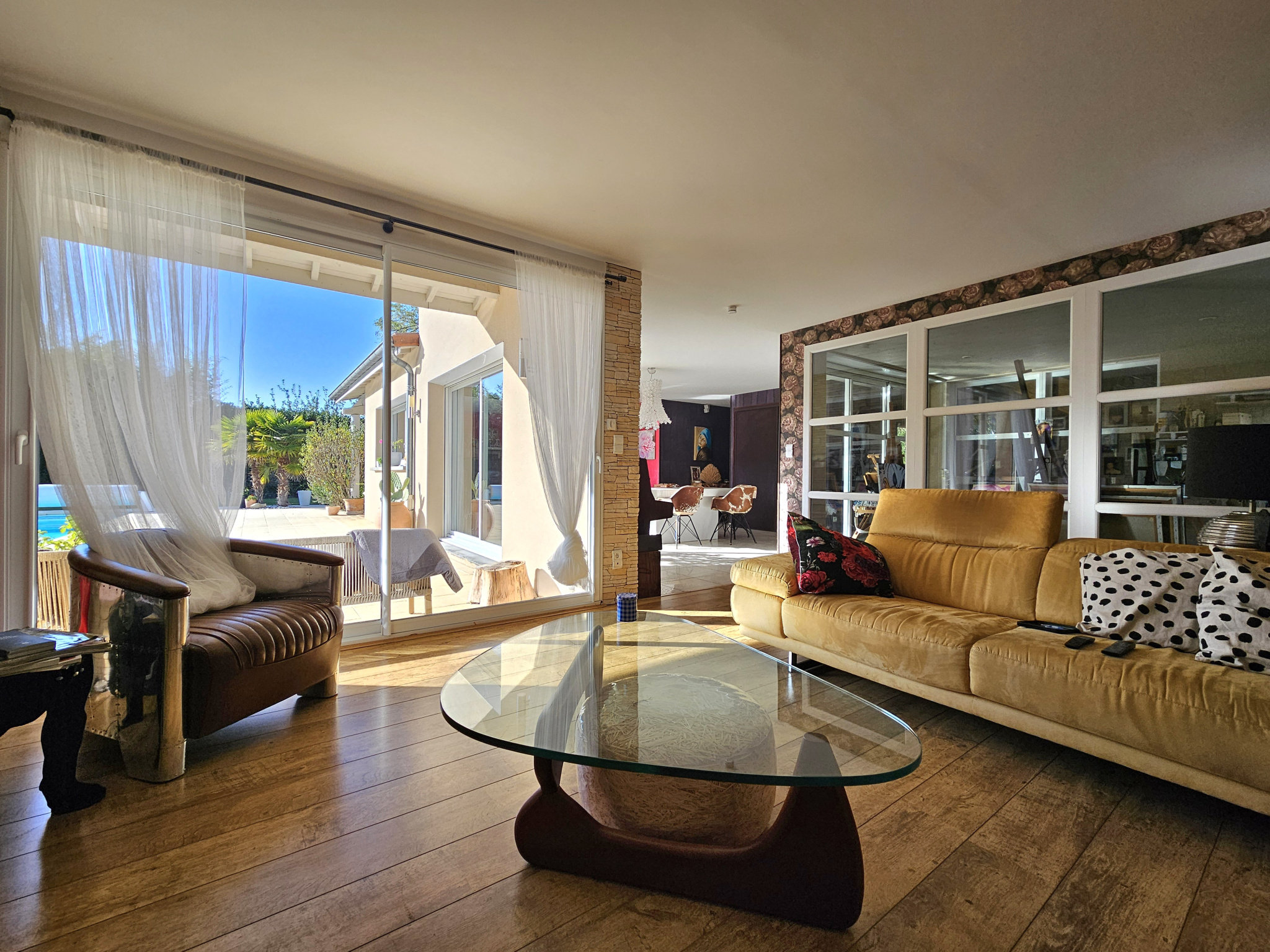Luminosité et espace : en rez-de-chaussée, hall d'entrée avec vestiaire, cuisine équipée haut-de-gamme semi-ouverte sur la salle à manger pour plus de convivialité. Le salon communique harmonieusement avec cette pièce repas pour un espace de vie fluide et chaleureux. Les pièces de vie sont baignées de lumière grâce à de vastes baies vitrées offrant un accès direct sur les terrasses. Bureau/atelier d'artiste : une pièce lumineuse idéale pour travailler ou laisser libre cours à votre créativité. Ravissante suite parentale de 40 m2 avec dressing et salle de bains complète ; wc, buanderie, cave climatisée. Chauffage au sol (gaz).