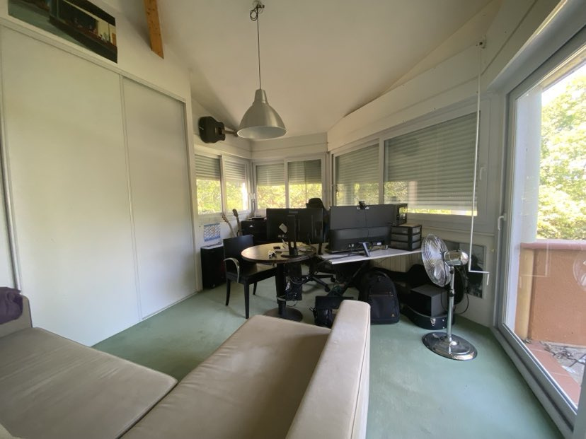 A l'étage un palier d'environ 13m2, une chambre d'amis (avec placard) avec sa salle de bains, 2 autres chambres (dont une avec placard), un wc séparé, une salle d'eau, un bureau (avec placard) d'environ 16m2 qui peut faire office de 5ème chambre et un dressing.