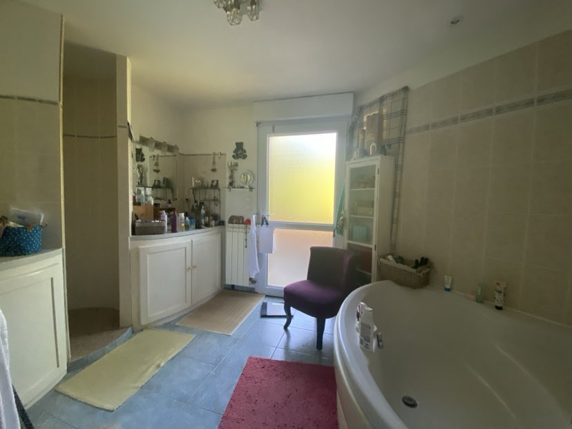Elle est composée au rez-de-chaussée d'une belle entrée avec placard, d'un bel espace vie : salon/séjour traversant baigné de lumière d'environ 50m2 avec pôele à bois, climatisation réversible et ses deux terrasses (une, exposition Sud et l'autre, exposition Nord) , d'une cuisine aménagée indépendante de 14m2 (idéale pour les déjeuners en famille), une chambre parentale (salle d'eau) avec placard intégré, un wc séparé ainsi qu'une buanderie.