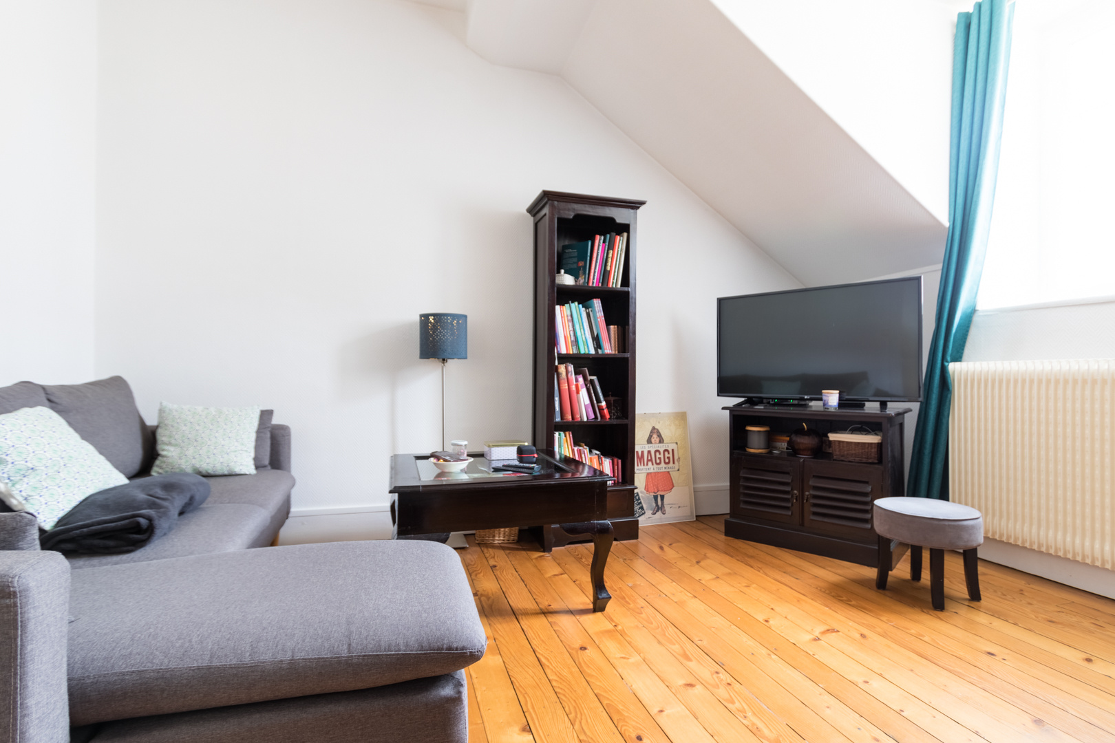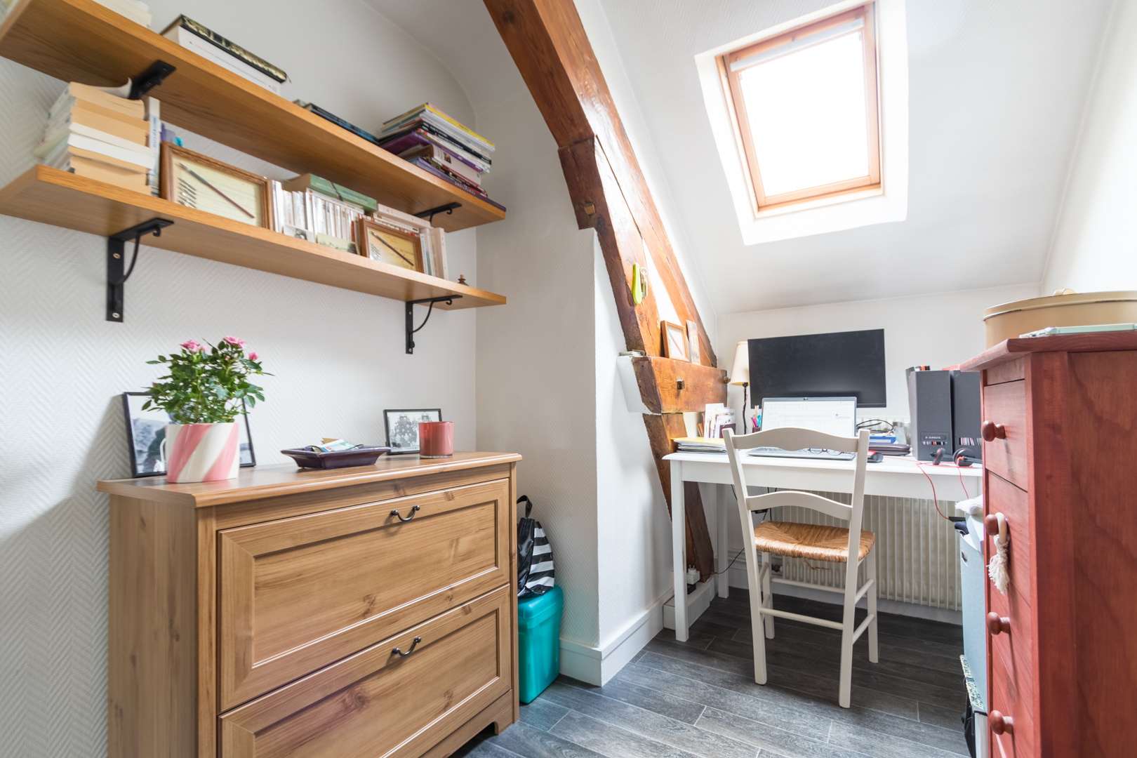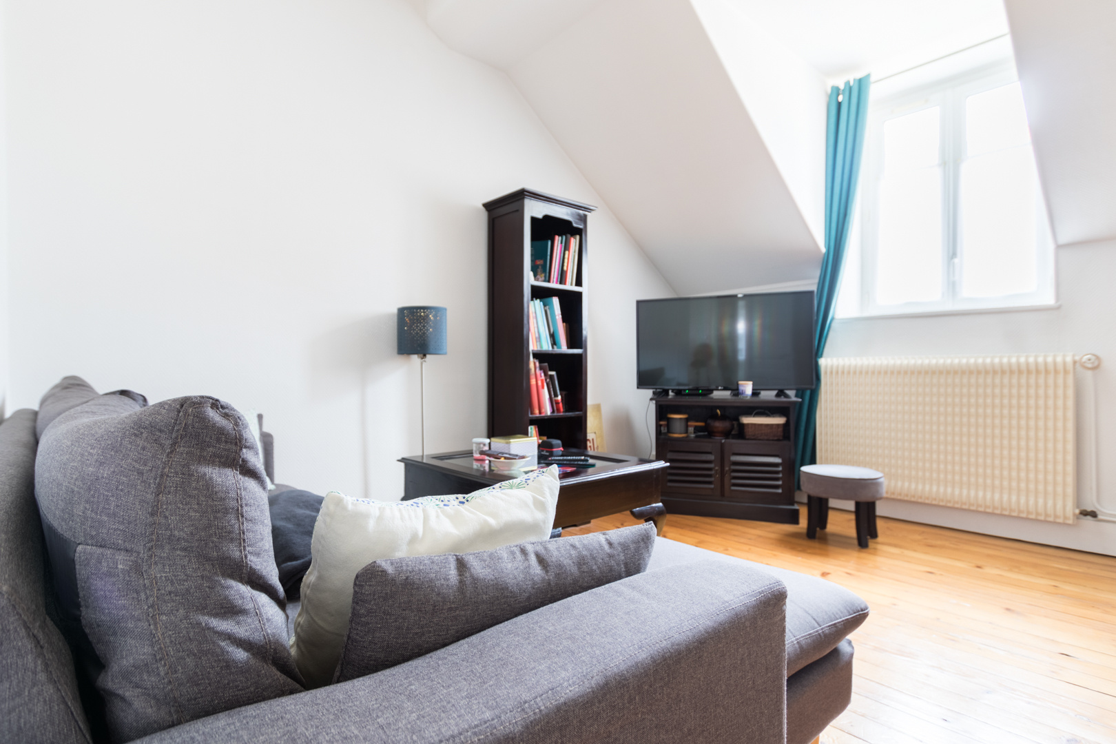 Bel appartement situé au 3ème et dernier étage d'un immeuble ancien comprenant cuisine équipée, salon, une chambre, un bureau, salle d'eau avec WC et espace chaufferie, cave.