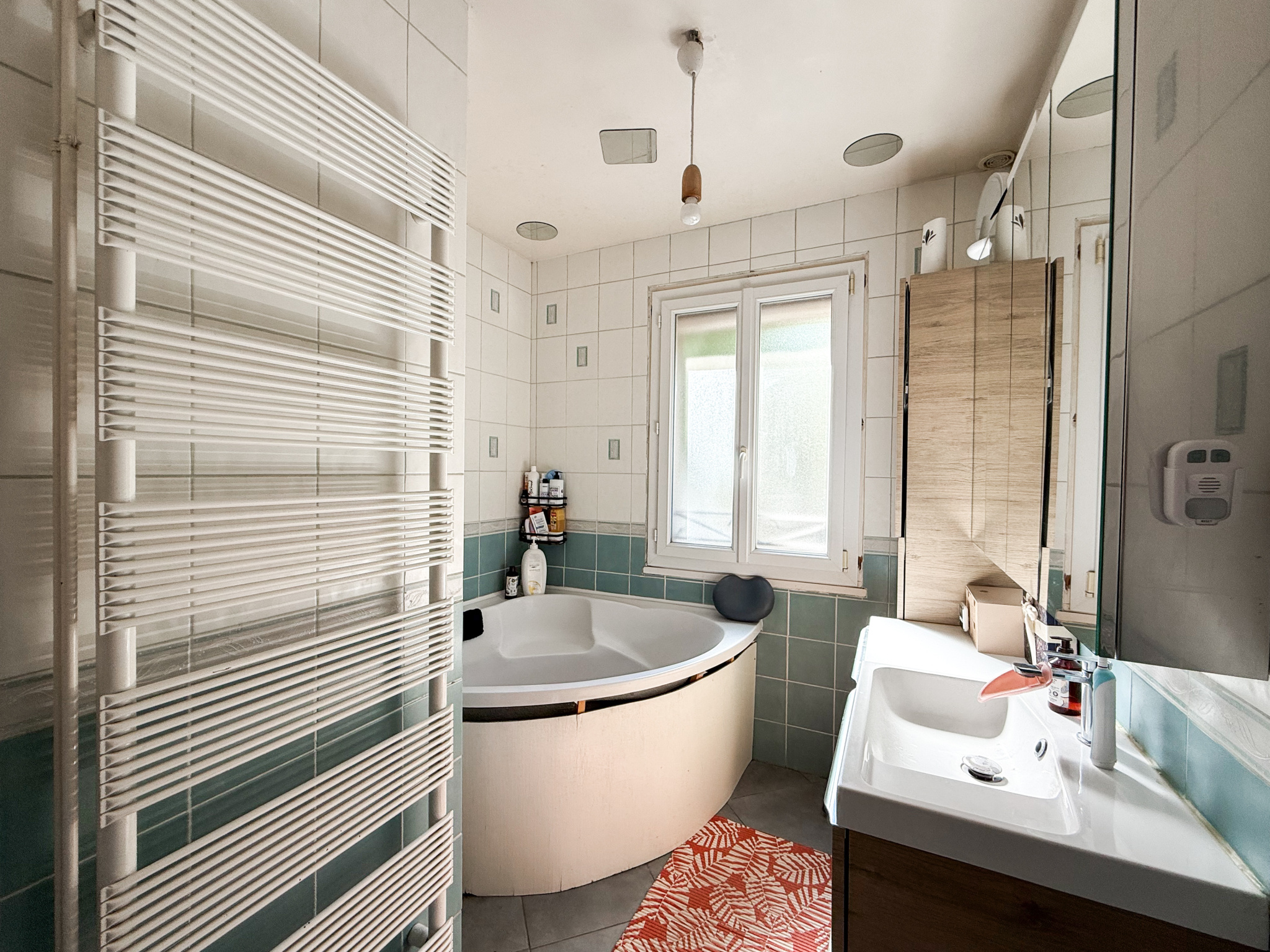 Je vous présente une maison semi-mitoyenne sur un terrain clos et arboré d'environ 700m2 comprenant :