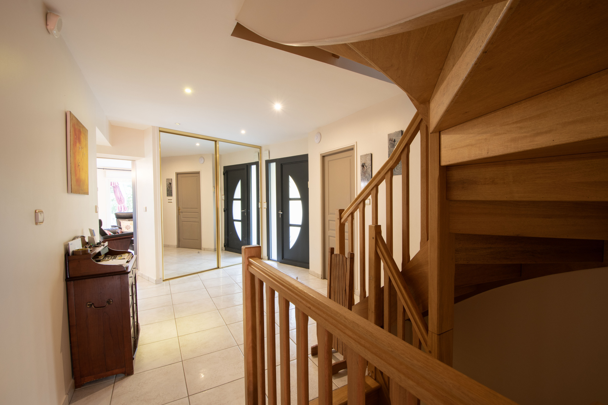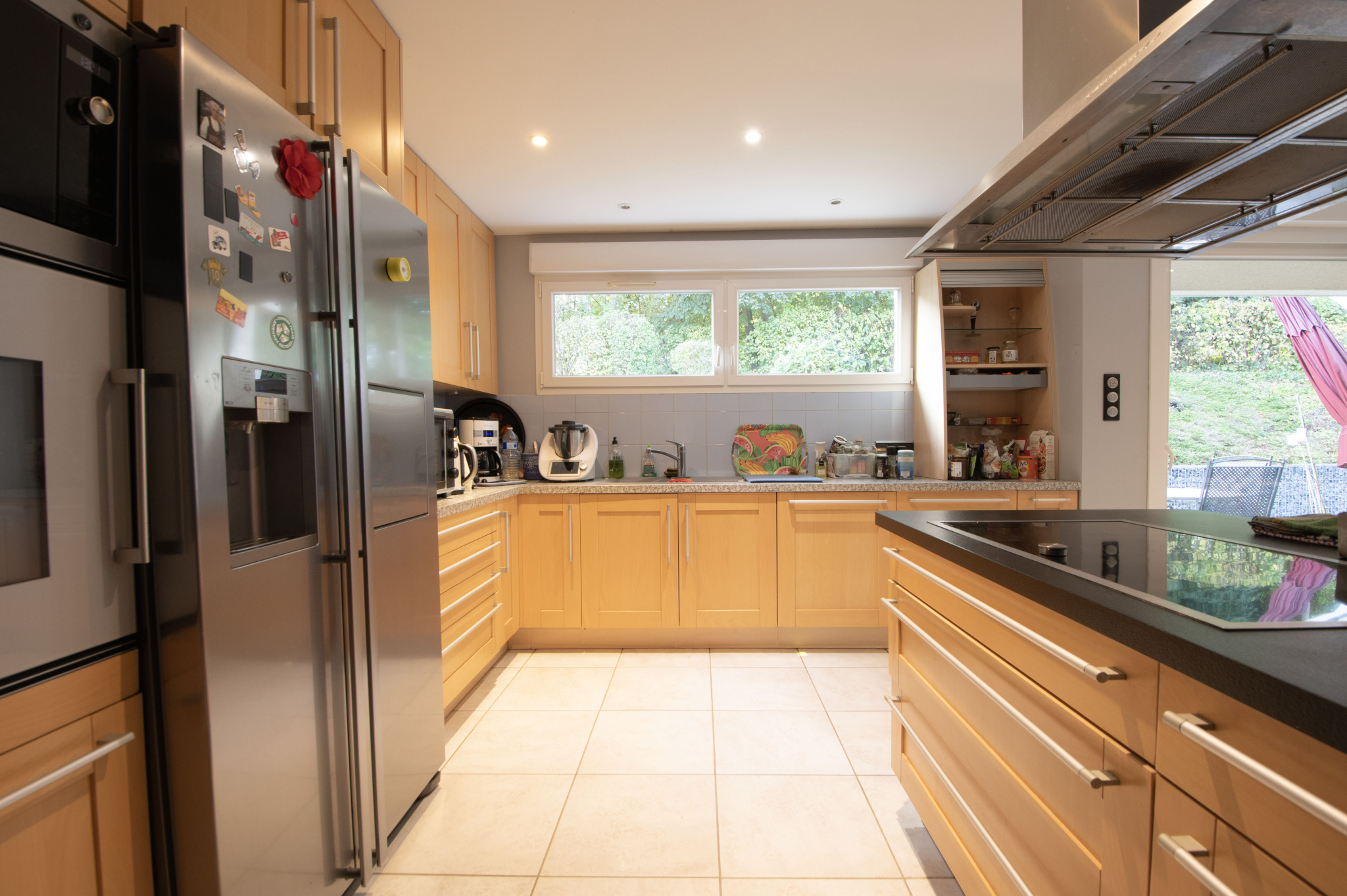 AMIENS - QUARTIER Plein Sud Située quartier Plein Sud, à proximité immédiate de la rue Saint-Fuscien, cette superbe maison d'architecte de 2004 signée François Seigneur séduit par son architecture contemporaine, ses volumes généreux et son environnement verdoyant exceptionnel. Édifiée sur une parcelle rare de 2 150 m2, dont une partie boisée à l'abri des regards, elle offre un cadre de vie unique, alliant calme absolu, lumière et prestations haut de gamme. Belle entrée avec vestiaire, grande cuisine équipée ouverte sur un vaste séjour / salon bénéficiant de larges baies vitrées orientées sud-ouest. Cheminée intégrée, volumes élégants et matériaux soignés créent une atmosphère à la fois moderne et chaleureuse. Le rez-de-chaussée comprend également une suite parentale (chambre, salle de bains avec baignoire et douche, dressing intégré) ainsi qu'un grand bureau. Une salle de bains et des WC. L'étage offre un palier/coin lecture, quatre grandes chambres avec rangements, dont une avec balcon, une salle d'eau (double vasque, douche), un WC séparé, une seconde salle de bains, et une cinquième pièce pouvant servir de dressing, de bureau ou de chambre d'amis. Un sous-sol complet accueille une grande salle de jeux, une lingerie, une cave à vin, un cellier et une chaufferie. Grand parking, Double garage. À l'extérieur, une belle terrasse plein sud s'ouvre sur un jardin paysager prolongé par un espace boisé privatif, un véritable havre de paix. Ce que l'on aime : Une maison d'architecte lumineuse et élégante, sur un terrain arboré de plus de 2 000 m2, offrant un rare sentiment d'espace et de nature à seulement quelques minutes du centre-ville d'Amiens.