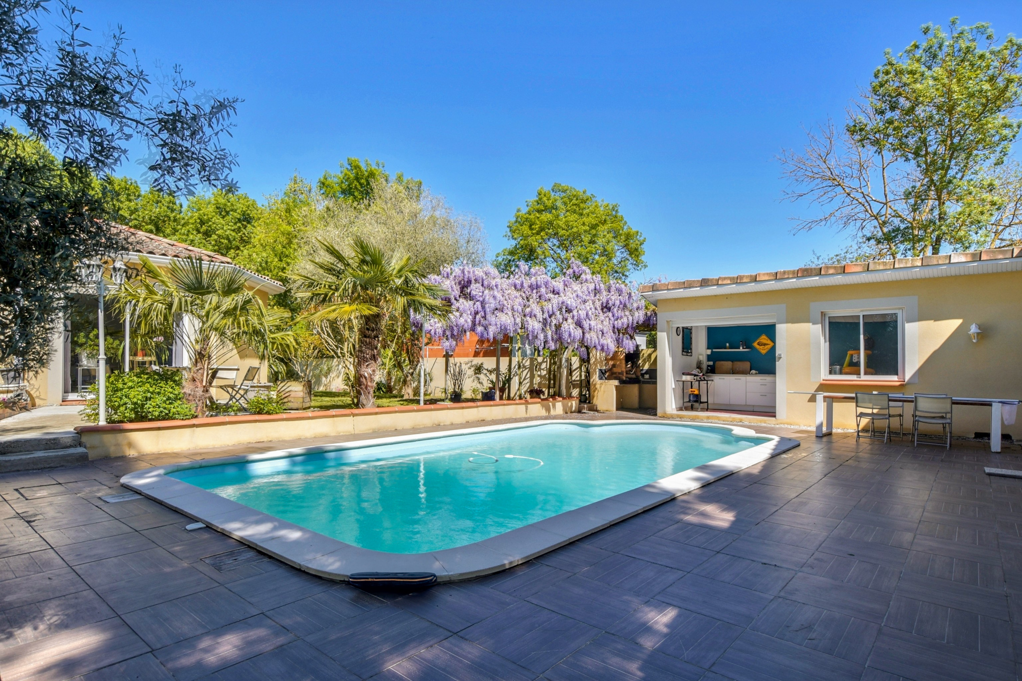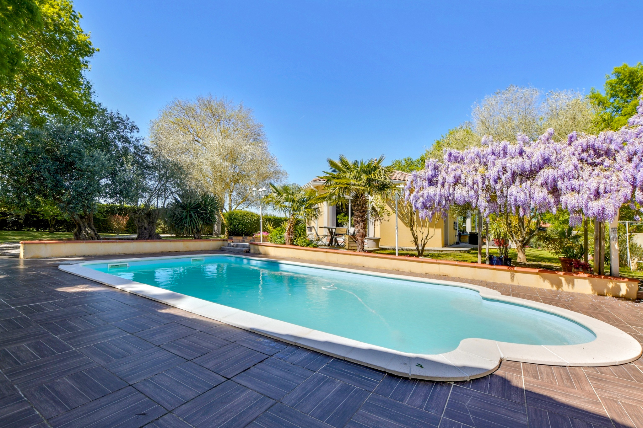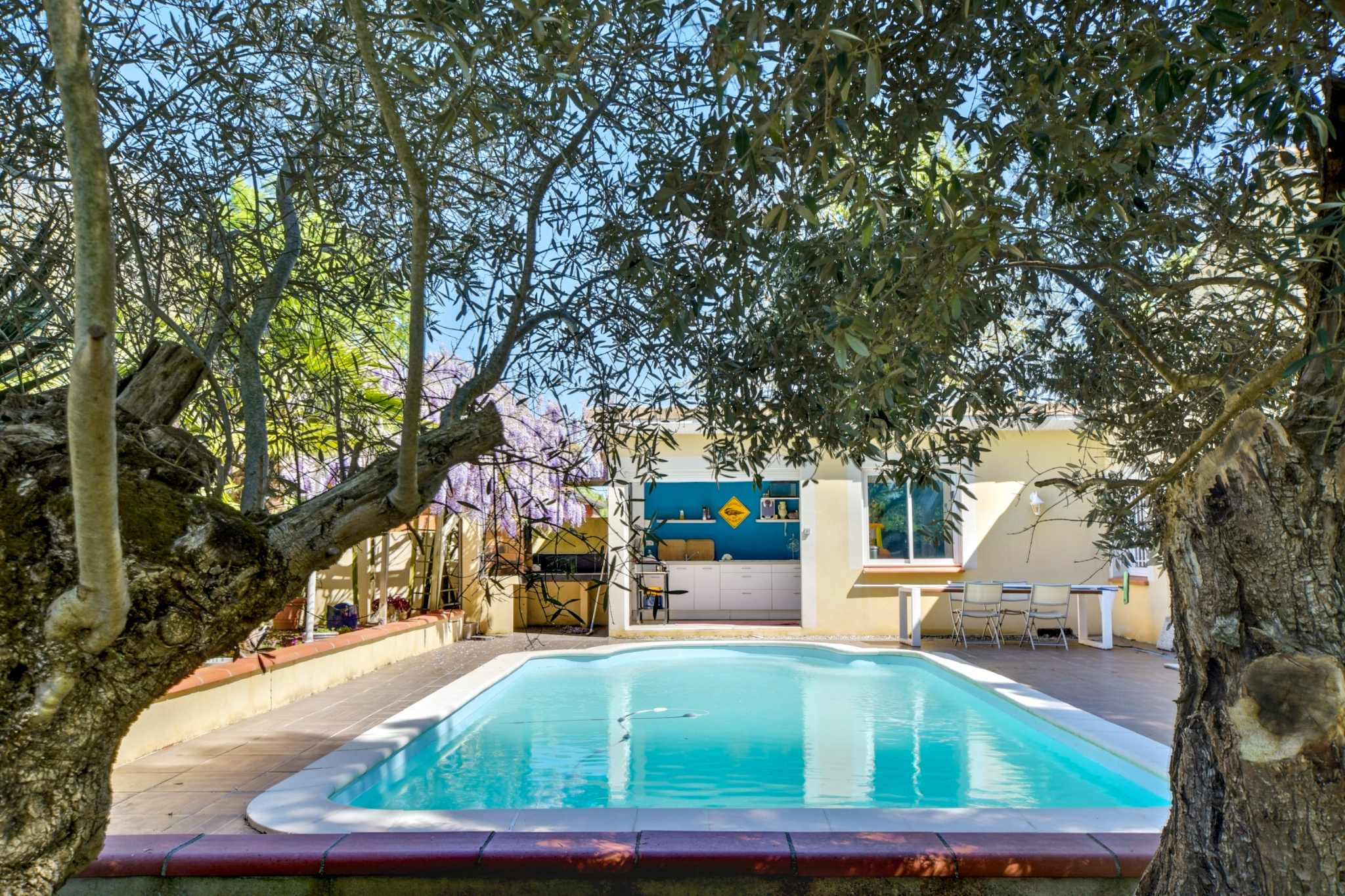 La piscine 8x4 m offre un havre de paix à l'ombre de la glycine, avec sa cuisine d'été et son barbecue.