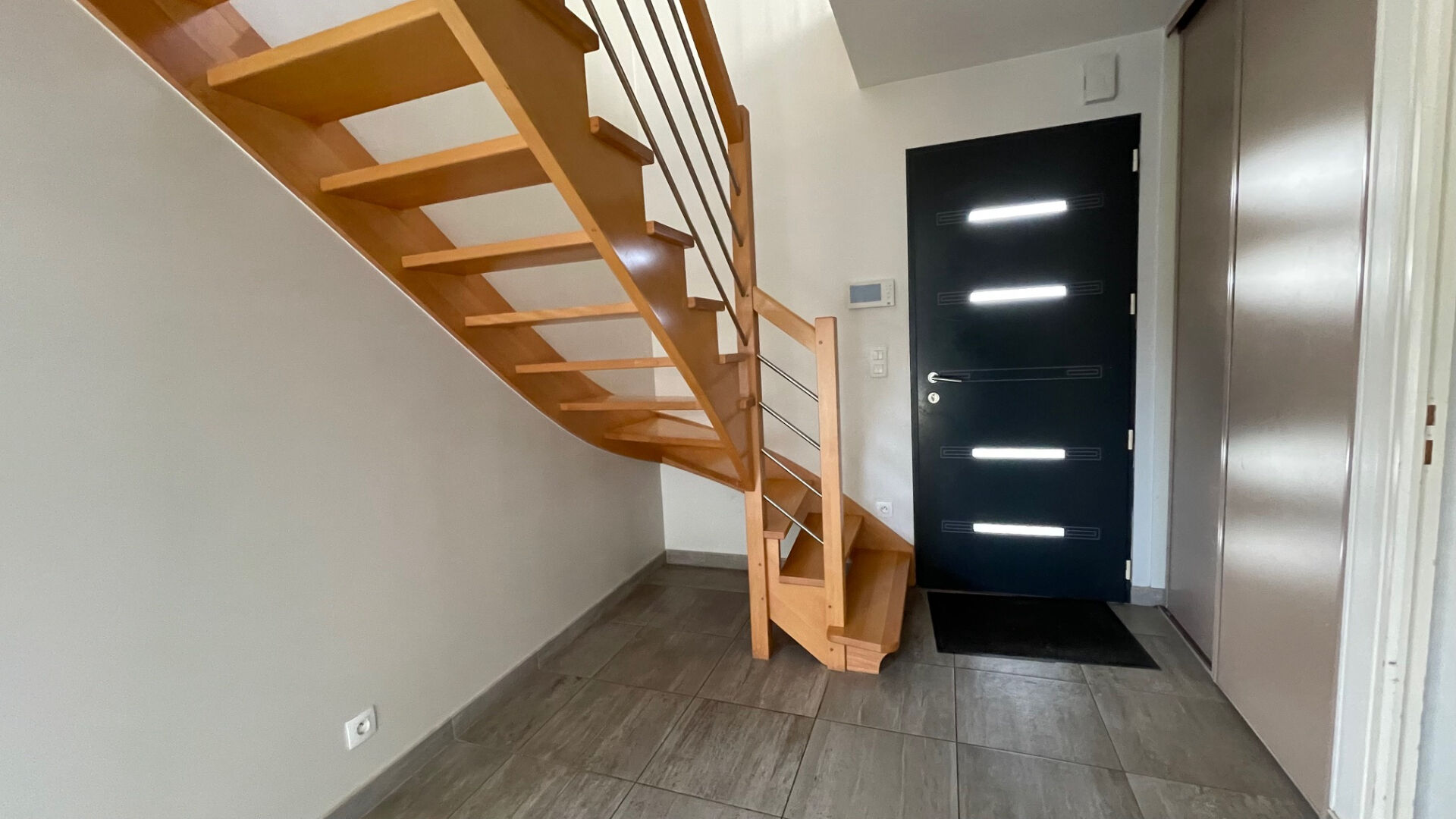 - Au RDC : une entrée avec placard, un ensemble salon-séjour-cuisine ouverte aménagée et équipée, une chambre avec salle de douche privative, une arrière/cuisine ainsi qu'un WC avec lave-mains. Terasse