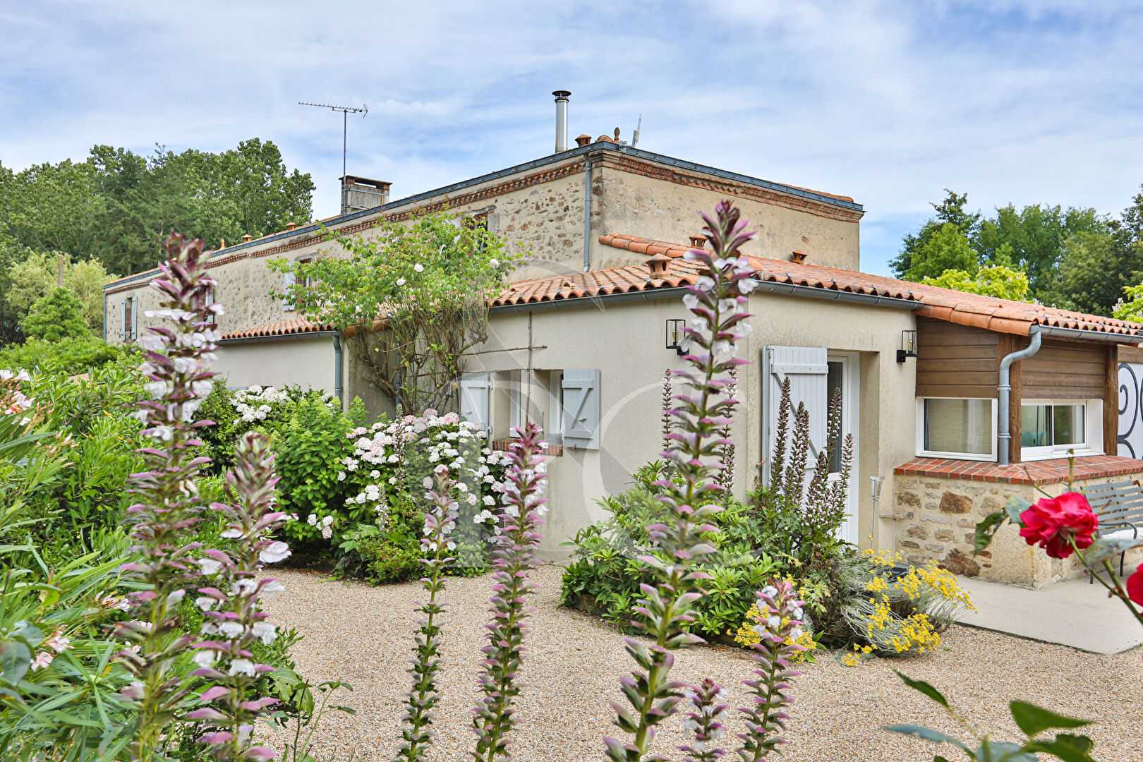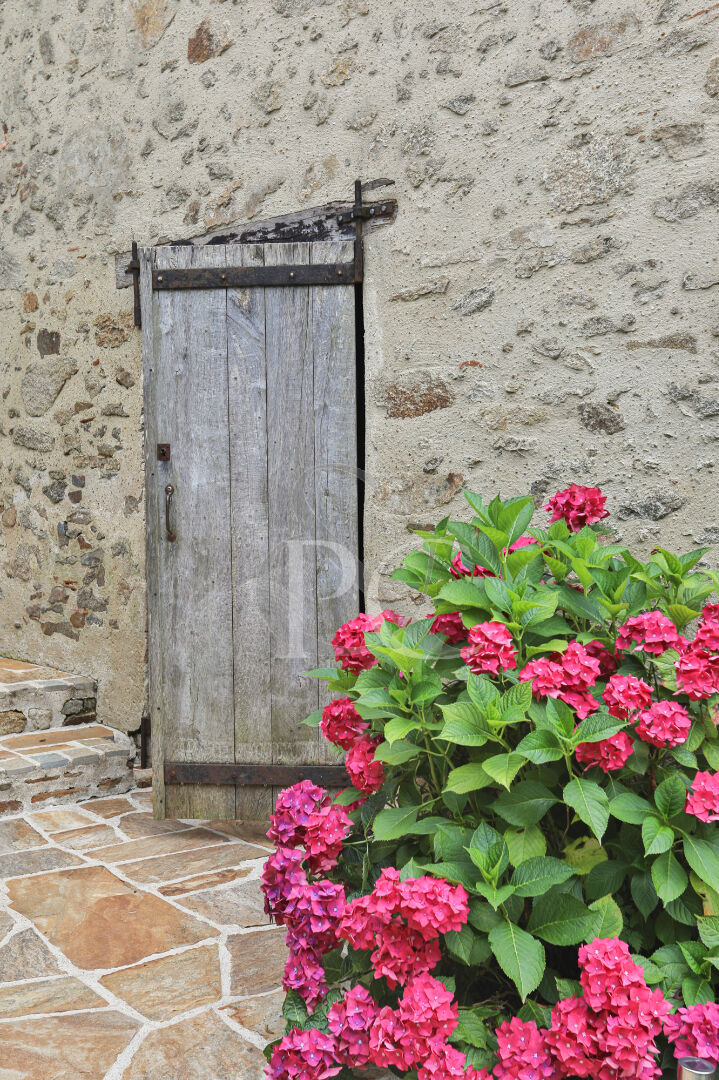 A l'extérieur, de nombreuses terrasses, cuisine d'été, grange/atelier avec grenier, piscine chauffée, carport, puits.