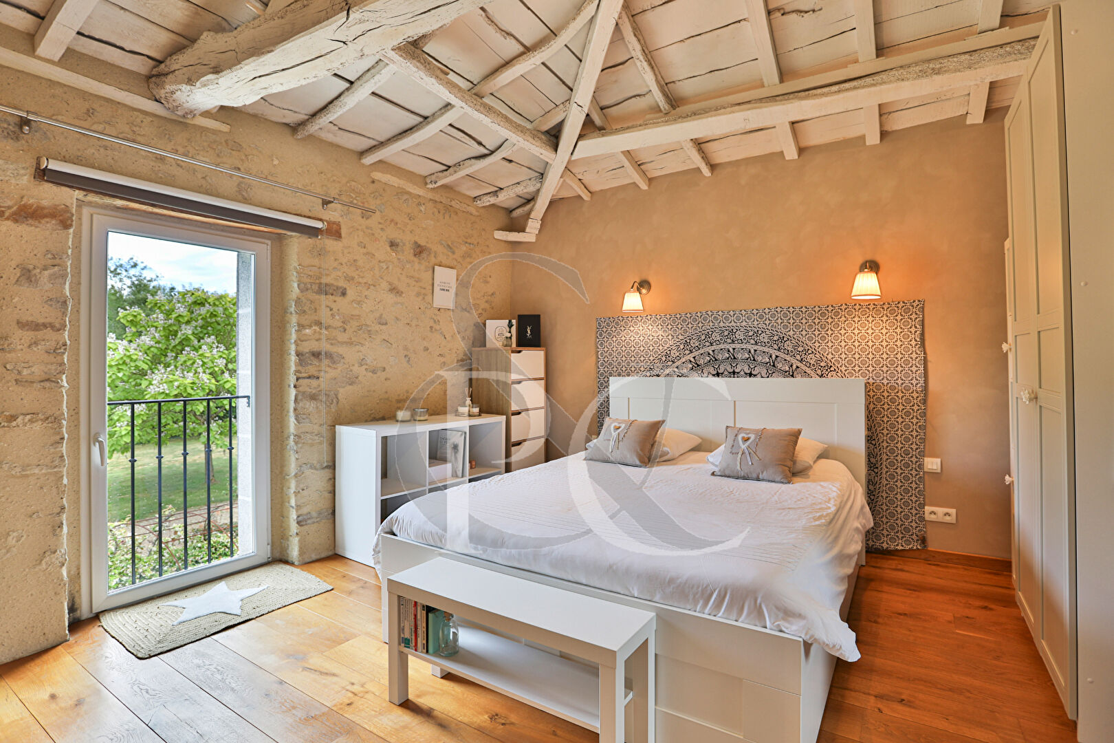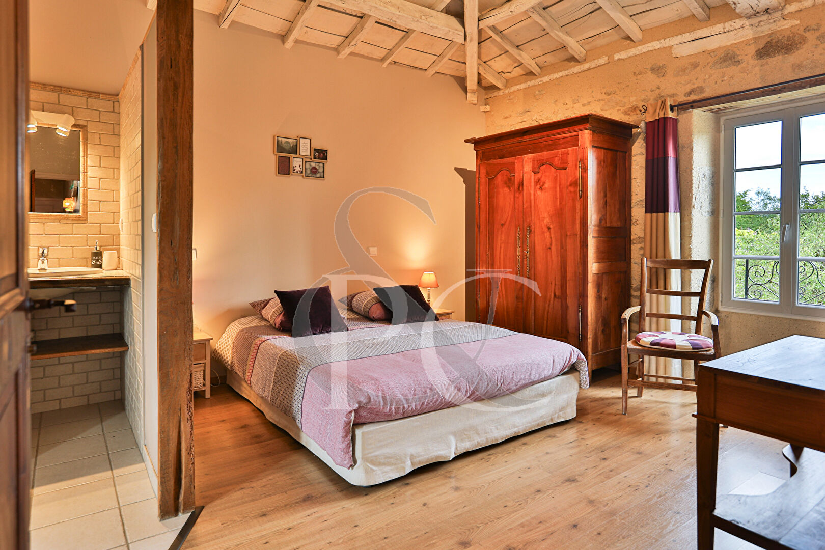 Sept belles chambres, dressing et poutres apparentes.