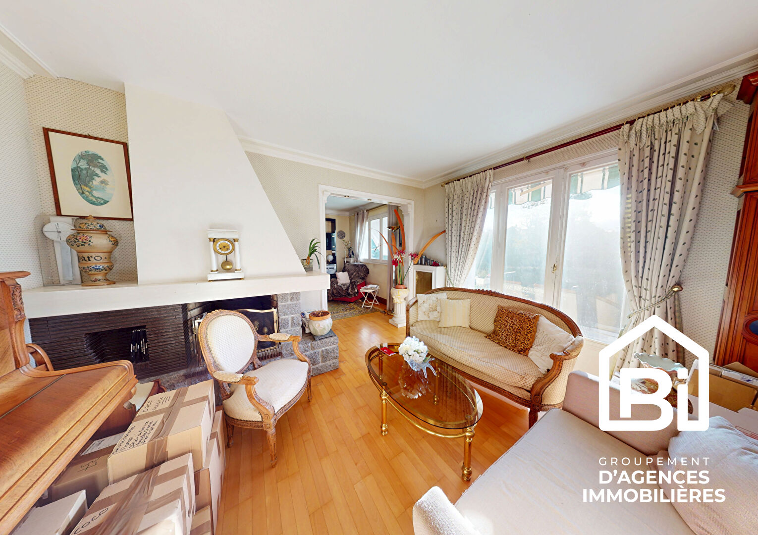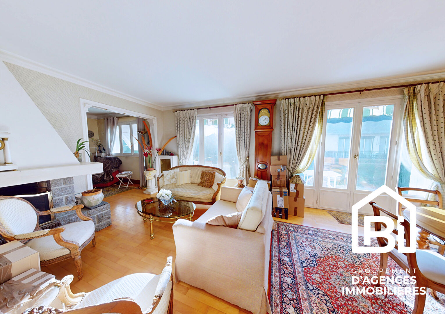 - Un double salon-séjour avec cheminée d'environ 40m2, ouvert sur une terrasse exposée sud-ouest
