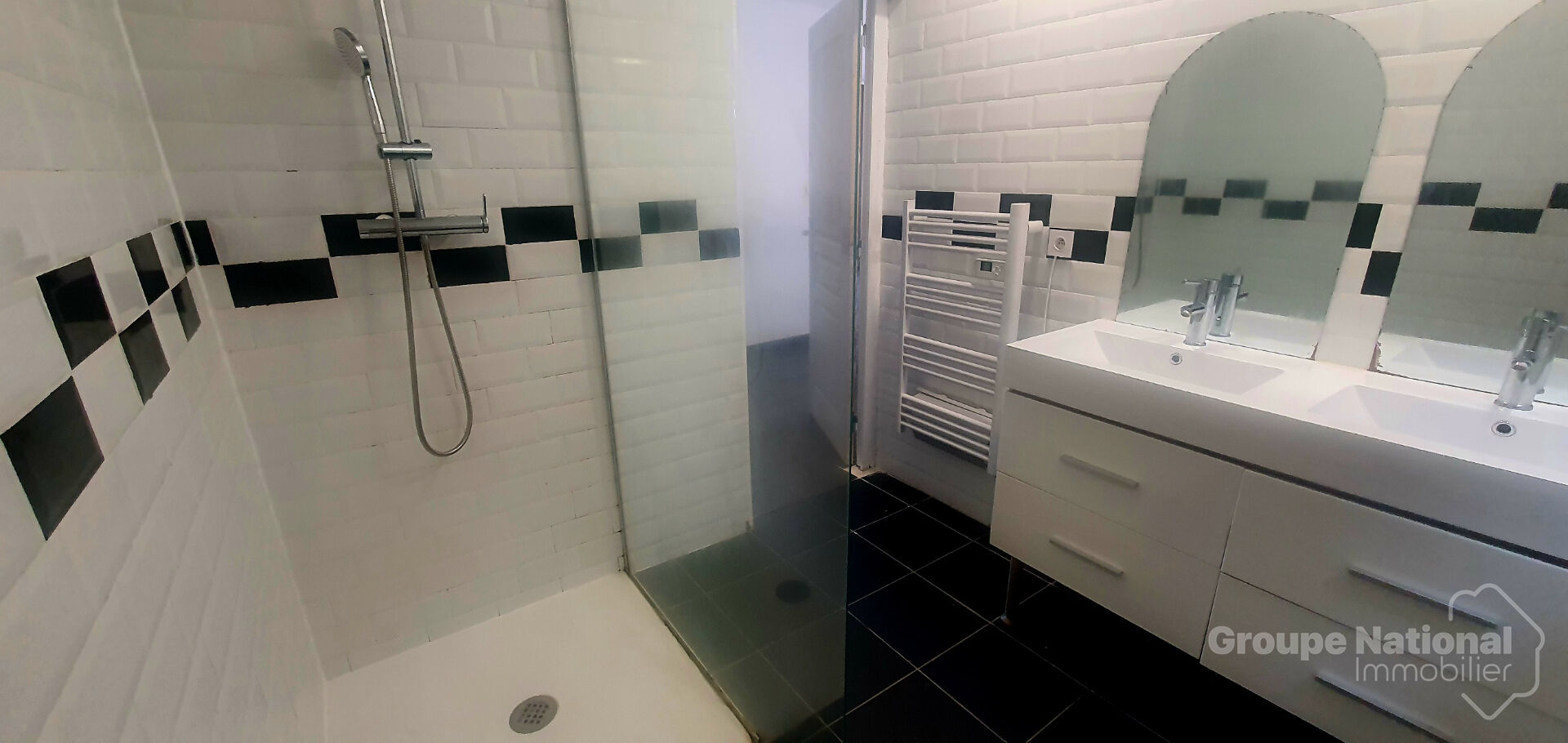 Une grande salle d'eau avec douche et double vasque, ainsi qu'un WC indépendant, viennent compléter ce premier logement.