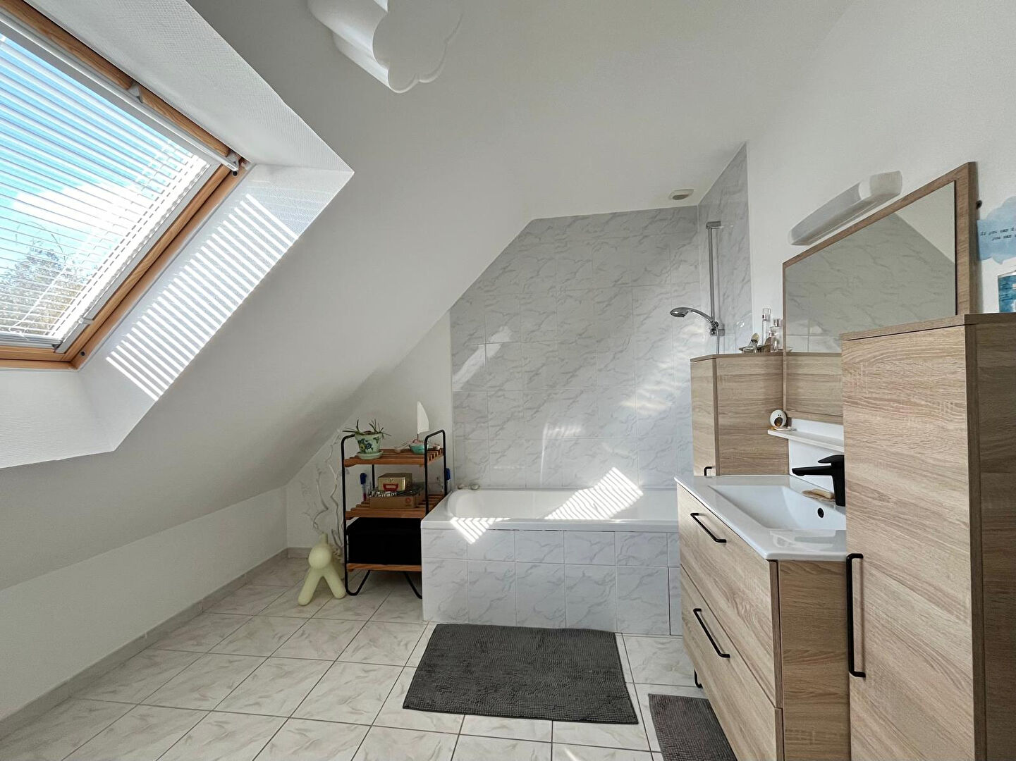 À l'étage, un palier distribue trois belles chambres dont une avec rangements, une salle de bains et des WC séparés.