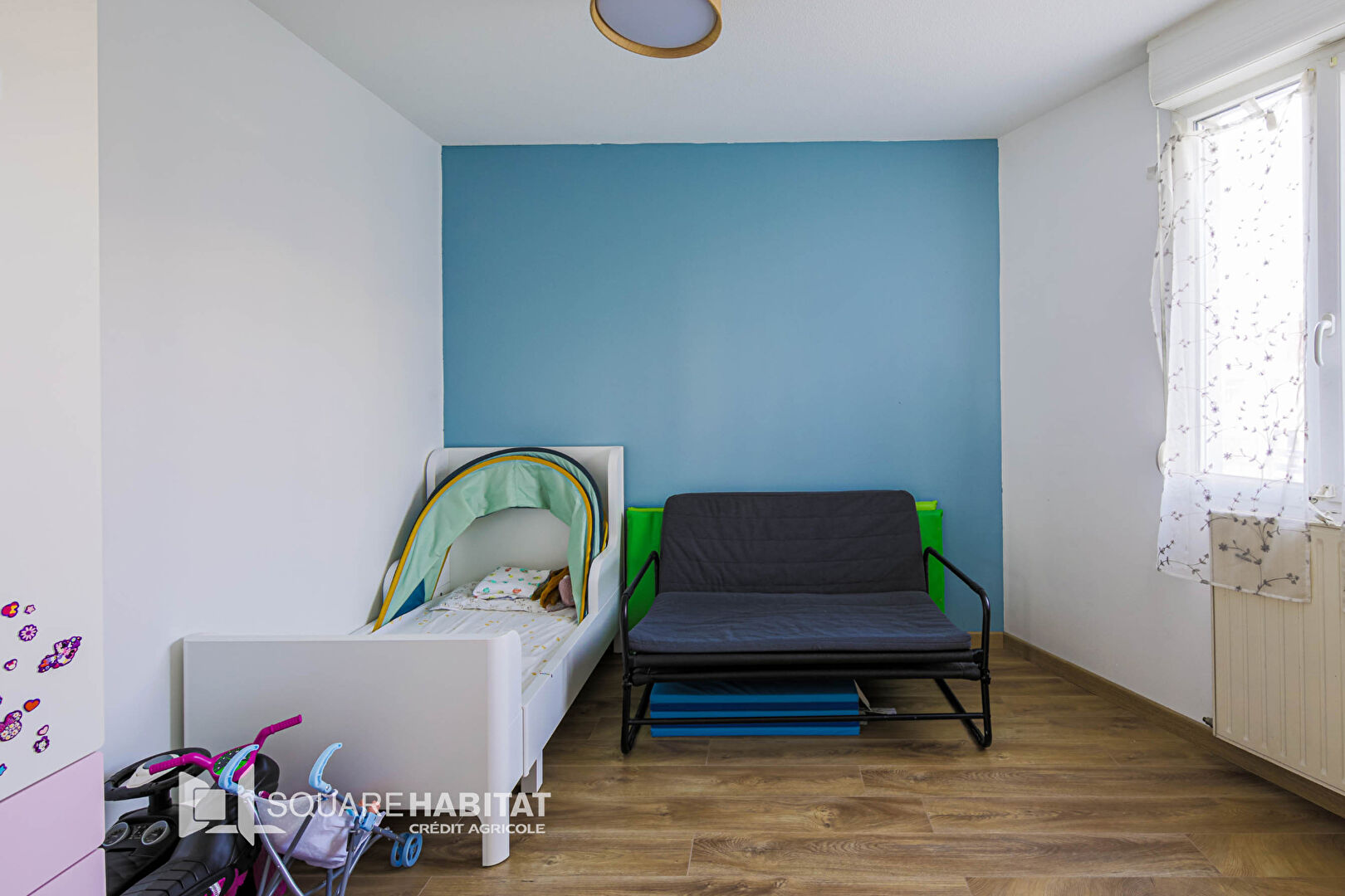 L'appartement se compose d'un grand salon lumineux ouvert sur une cuisine équipée moderne, idéal pour partager des moments conviviaux. Vous y trouverez également deux chambres, une salle de bain fonctionnelle et des rangements pratiques.