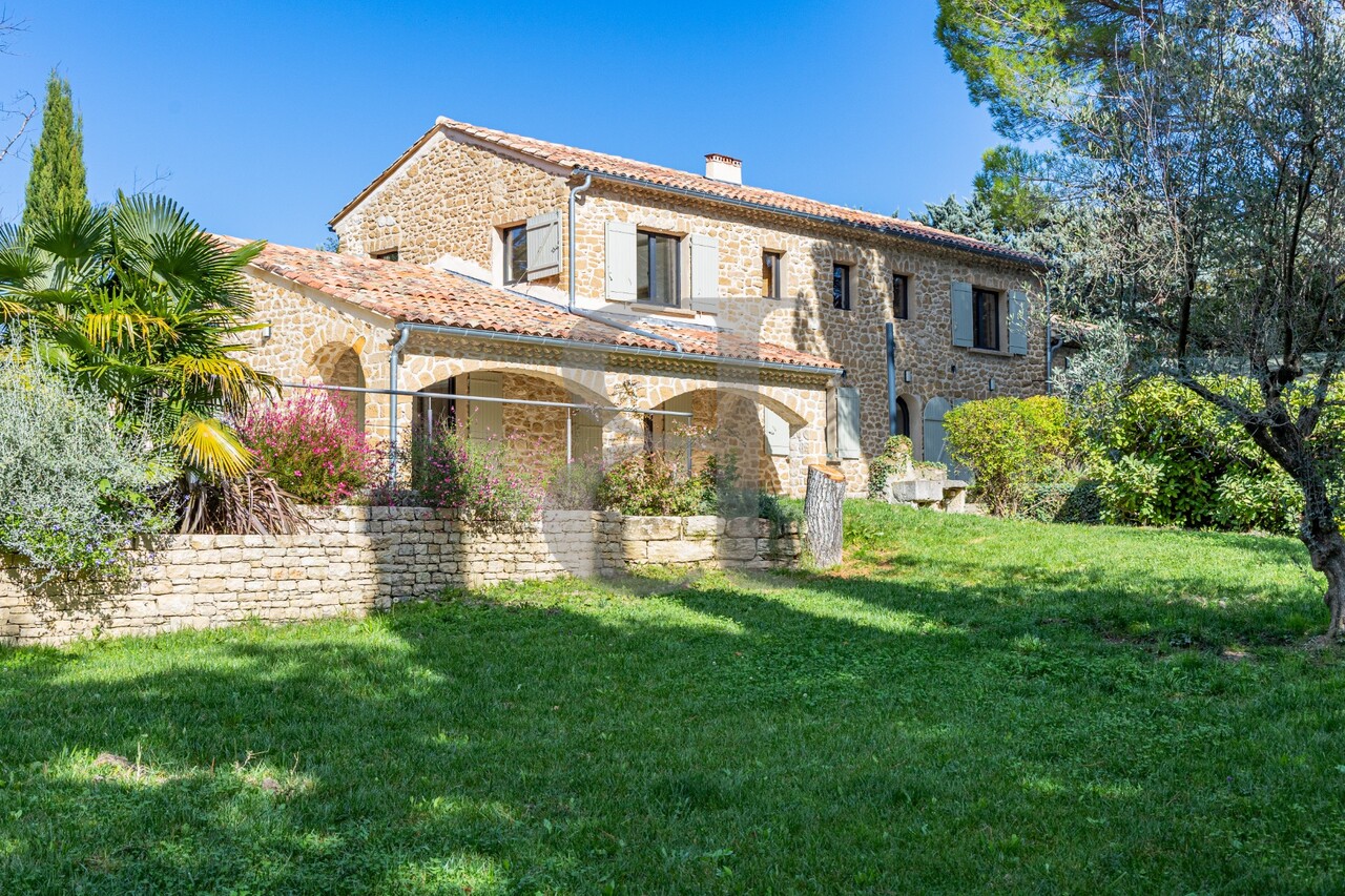 Sur les hauteurs de Vaison-la-Romaine, dans un environnement privilégié, cette superbe propriété en pierre offre un cadre de vie rare, alliant charme authentique et confort contemporain.
