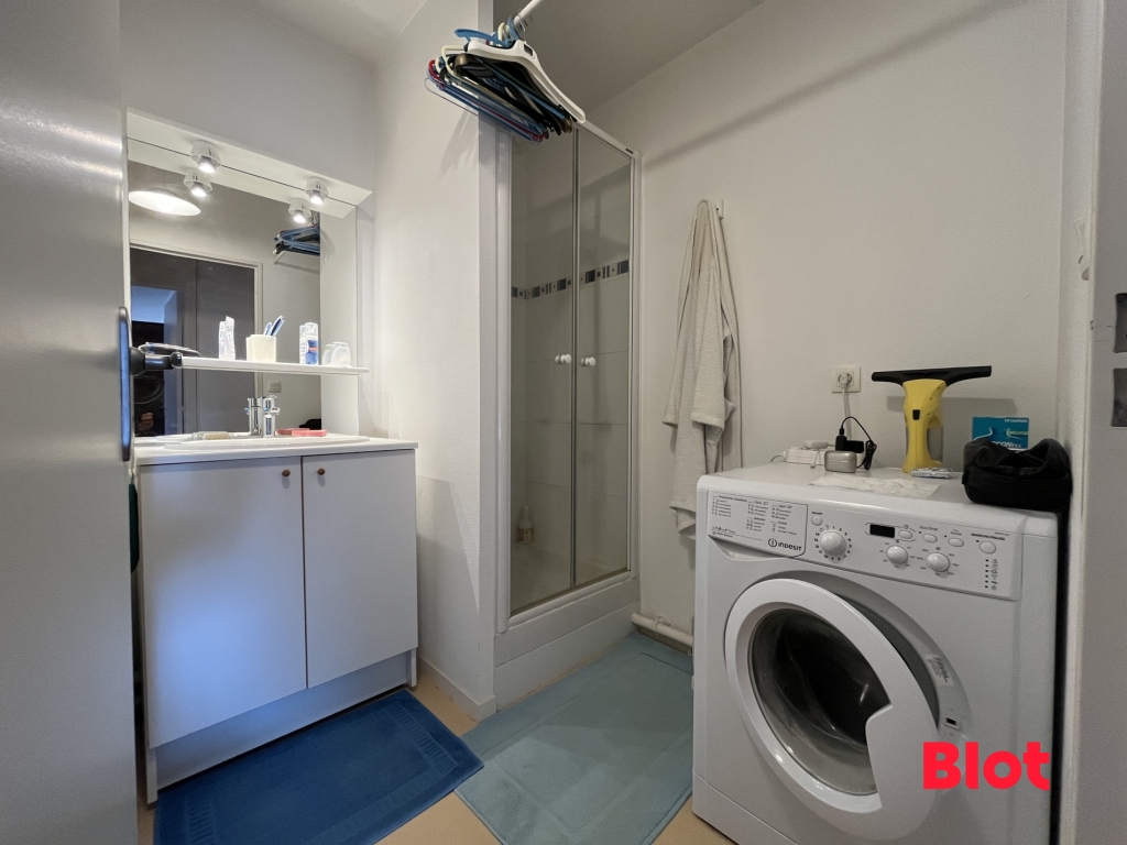 L'entrée avec placards dessert un salon,-séjour donnant accès au balcon exposé Sud, une cuisine ouverte aménagée et équipée, deux chambres dont une avec placard, une salle d'eau et un WC.
