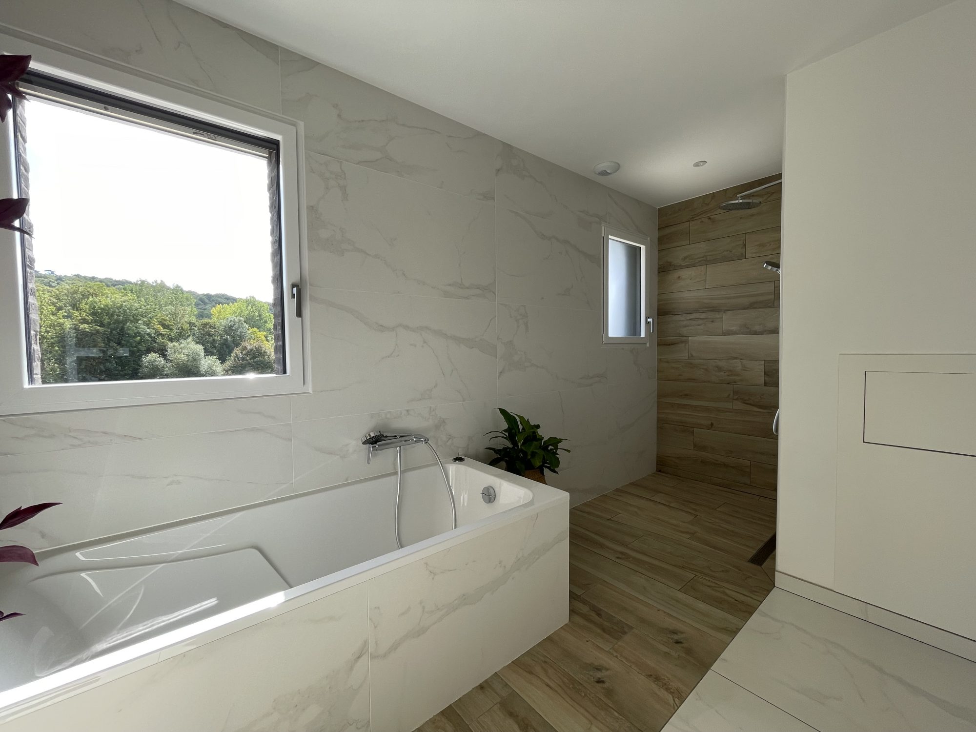 190 m² habitables, construits avec des matériaux de qualité, sur un sous-sol total de 2,80 m de hauteur, offrant la possibilité d'y stationner jusqu'à 4 véhicules.