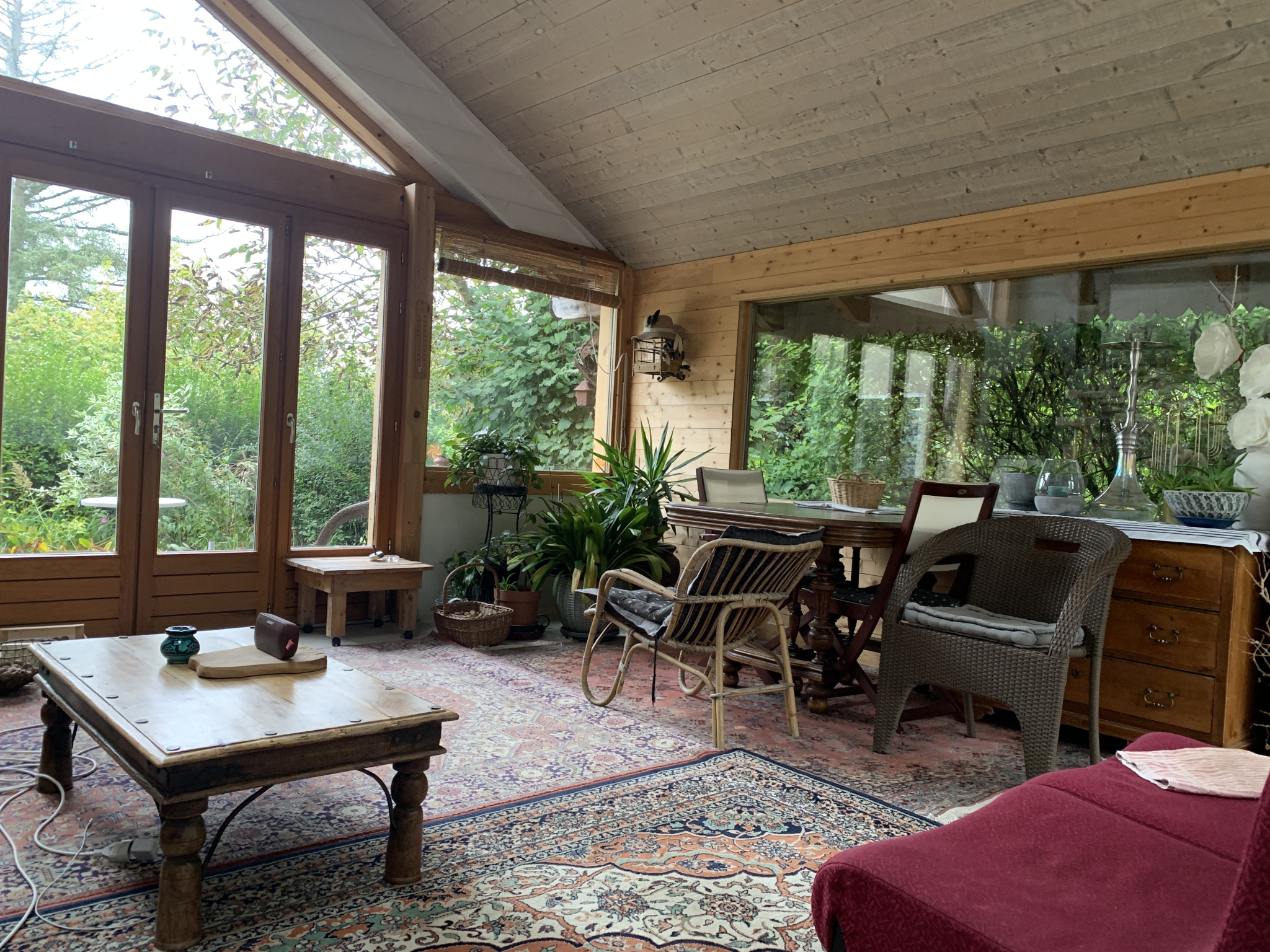 A l'extérieur : terrasse, atelier, bucher, terrain entièrement clos et arboré, très joli verger.