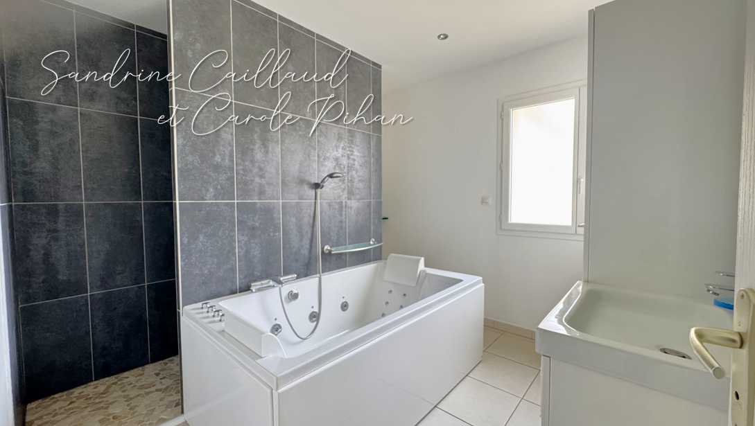 La maison dispose d'une pièce de vie triple exposition, d'une cuisine indépendante aménagée et équipée, avec son cellier, d'un double garage, et côté technologie, de volets électriques, d'un portail et porte de garage motorisés, d'un store banne extérieur, ainsi que baignoire à remous (avec éclairage). La fibre optique est installée.