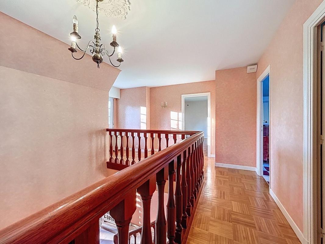 Vous trouverez au rez-de-chaussée une entrée majestueuse, un salon-séjour, une cuisine, une suite parentale avec sa salle d'eau, deux WC, un bureau, un atelier, un garage avec son grenier à aménager. A l'étage 5 chambres avec plusieurs points d'eau, une salle de bains, un WC.