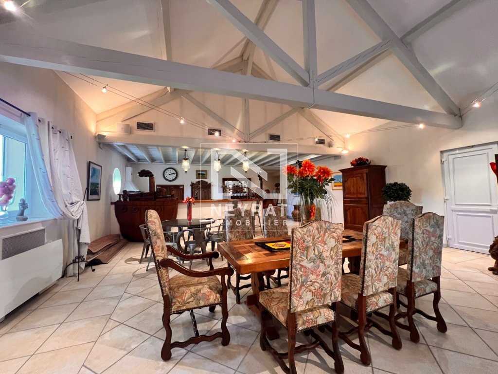 L'espace de vie s'articule autour d'une cuisine ouverte et d'un vaste salon-séjour baignés de lumière grâce à de grandes baies. L'agencement favorise une circulation fluide entre la cuisine conviviale, le coin repas et le salon, créant un ensemble adapté tant à la vie de famille qu'à la réception. Un cellier attenant apporte un espace de rangement pratique et organisé.