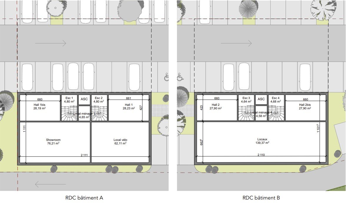Projet de 2 immeubles de bureaux neufs à construire, d'une surface totale de 2 267,53 m² SDP, répartie comme suit :