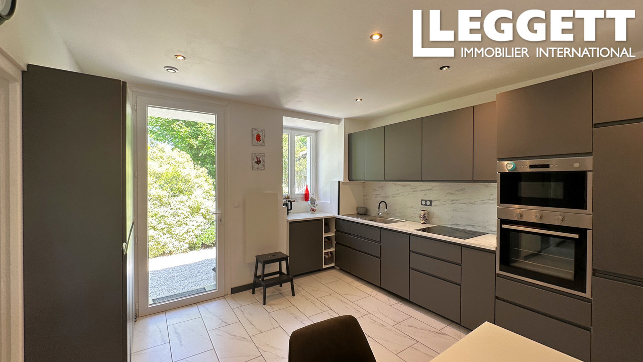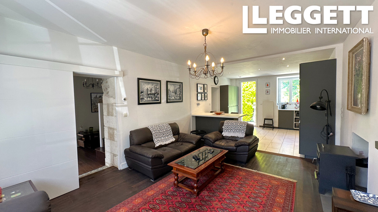 A36974AMS16 - Située à la périphérie de Montbron, cette maison individuelle offre une vue paisible sur la rivière et tout le confort moderne, à proximité des commerces, restaurants, écoles, médecins et équipements sportifs. Elle dispose d'une entrée lumineuse avec vestiaire, d'un salon spacieux avec poêle à bois, et d'une cuisine ouverte moderne avec coin repas, rangements intégrés et vue sur le jardin. Deux chambres doubles en rez-de-chaussée, une avec accès à la terrasse et à l'espace barbecue. Une seconde salle d'eau avec WC complète le niveau. À l'étage, les combles aménagés offrent une pièce polyvalente, idéale comme chambre/rangement ou, bureau. Le jardin cloturere par un hais offre des arbres fruitiers, un potager, un coin repas couvert et une piscine hors-sol. Double garage, parking privé, chauffage central au gaz, double vitrage récent et éléments d'origine en pierre complètent ce bien de charme.