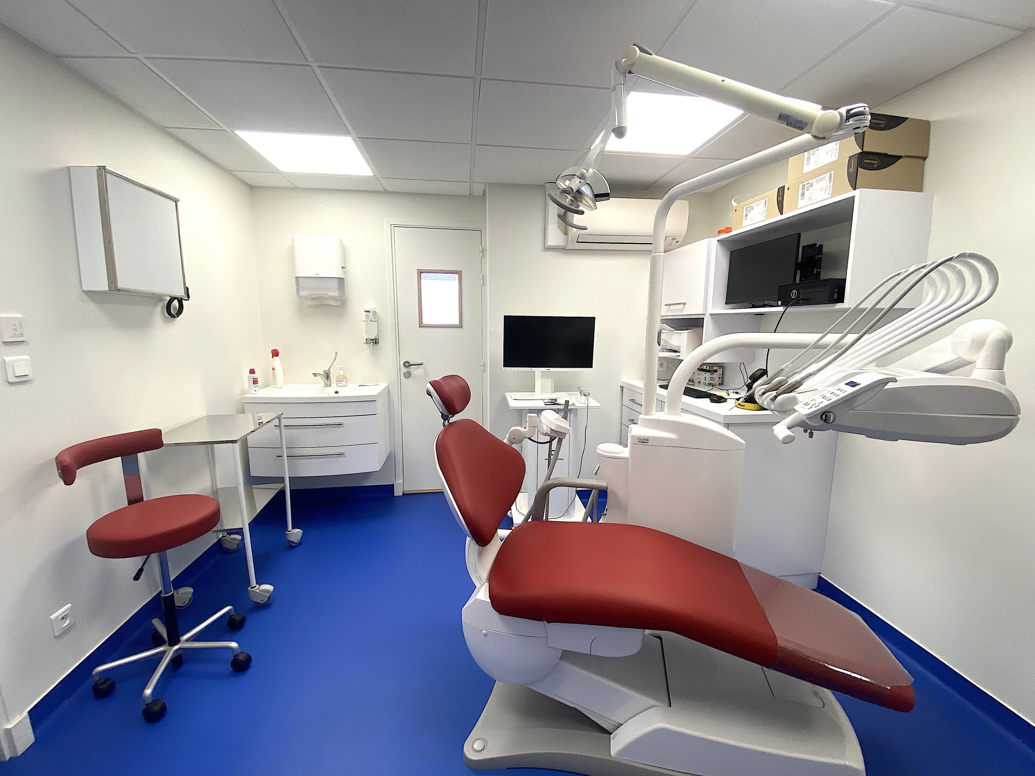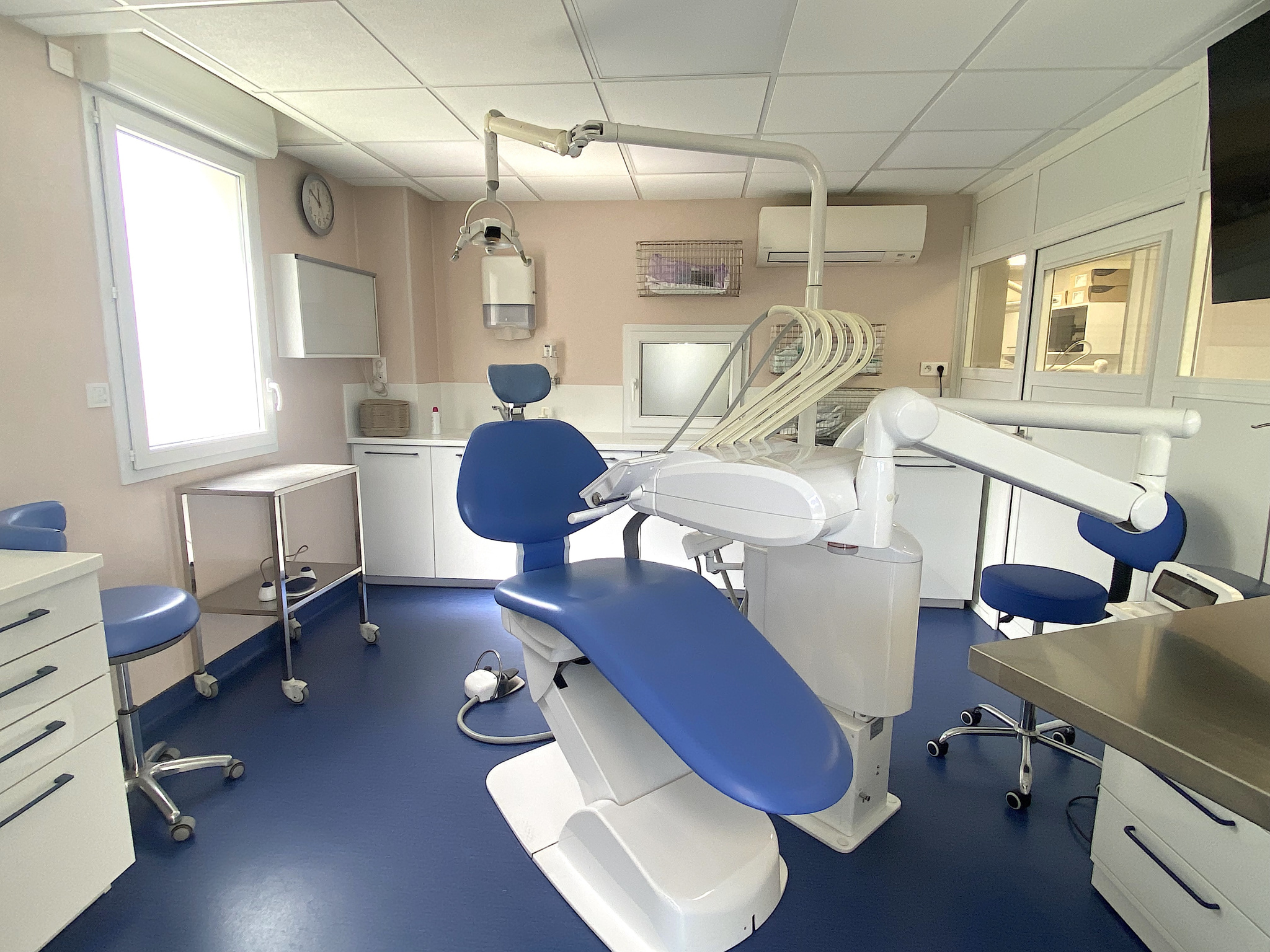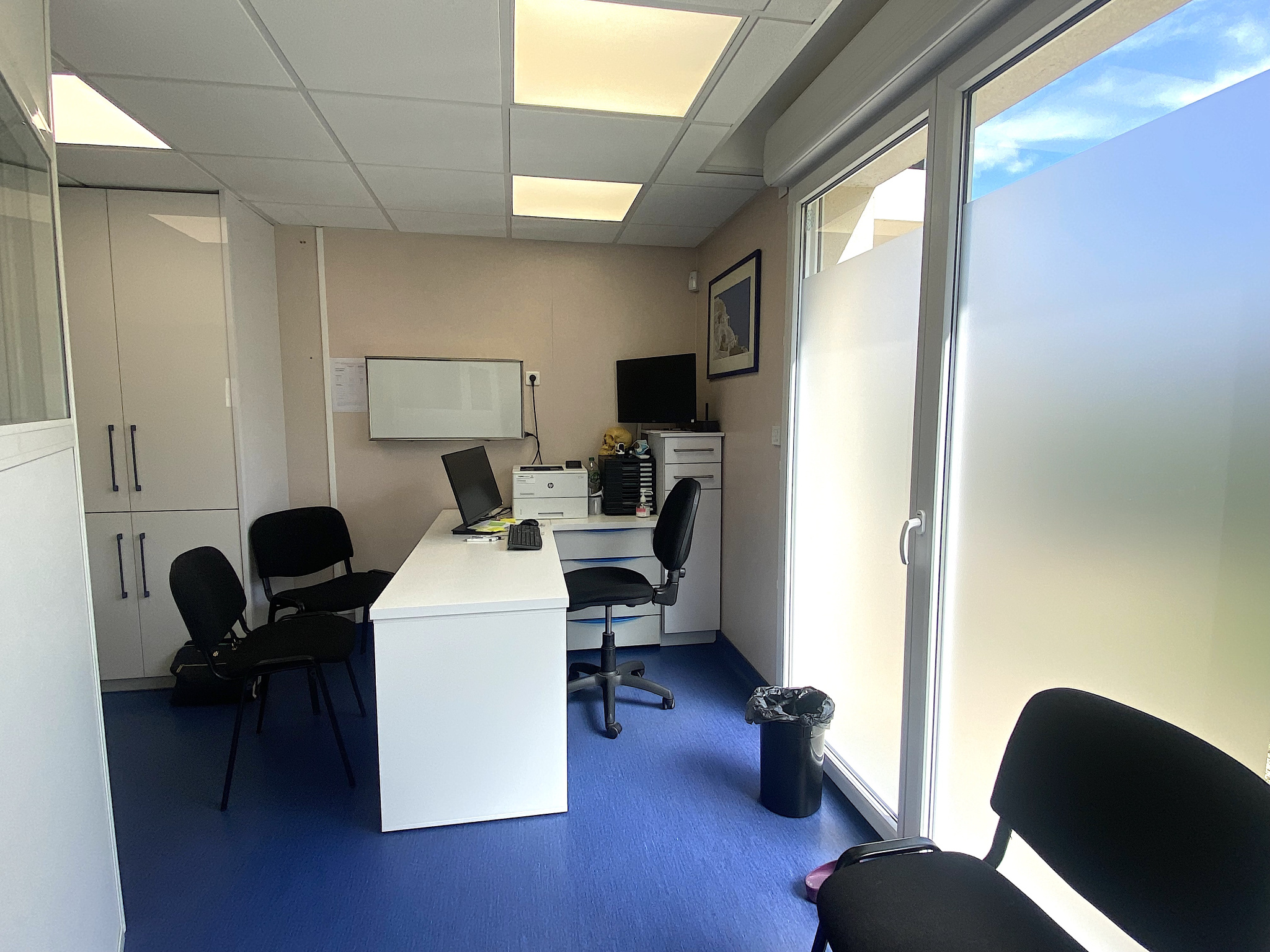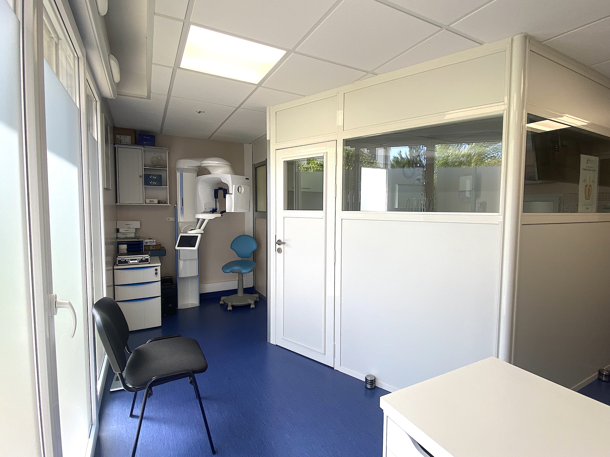 Actuellement utilisé en cabinet dentaire, il se compose d'une entrée hall d'accueil - secrétariat, d'une salle d'attente, d'un bureau médical avec cloison amovible, d'une salle de soins, d'une pièce vestiaire - détente, d'une pièce de rangement et de stérilisation, et de deux WC.