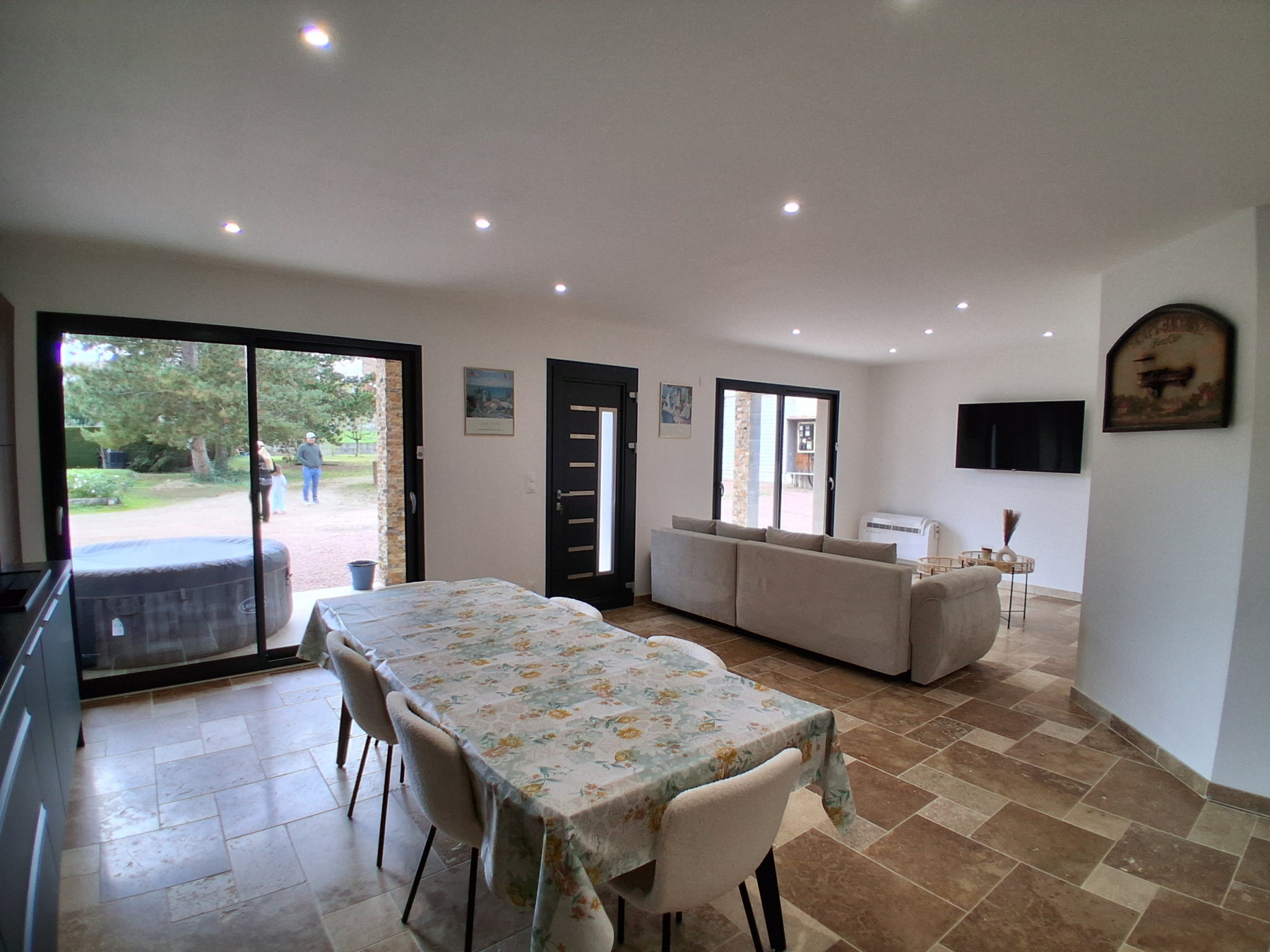 Construction récente de plain-pied (84 m2) réalisée avec de beaux matériaux et des finitions soignées.