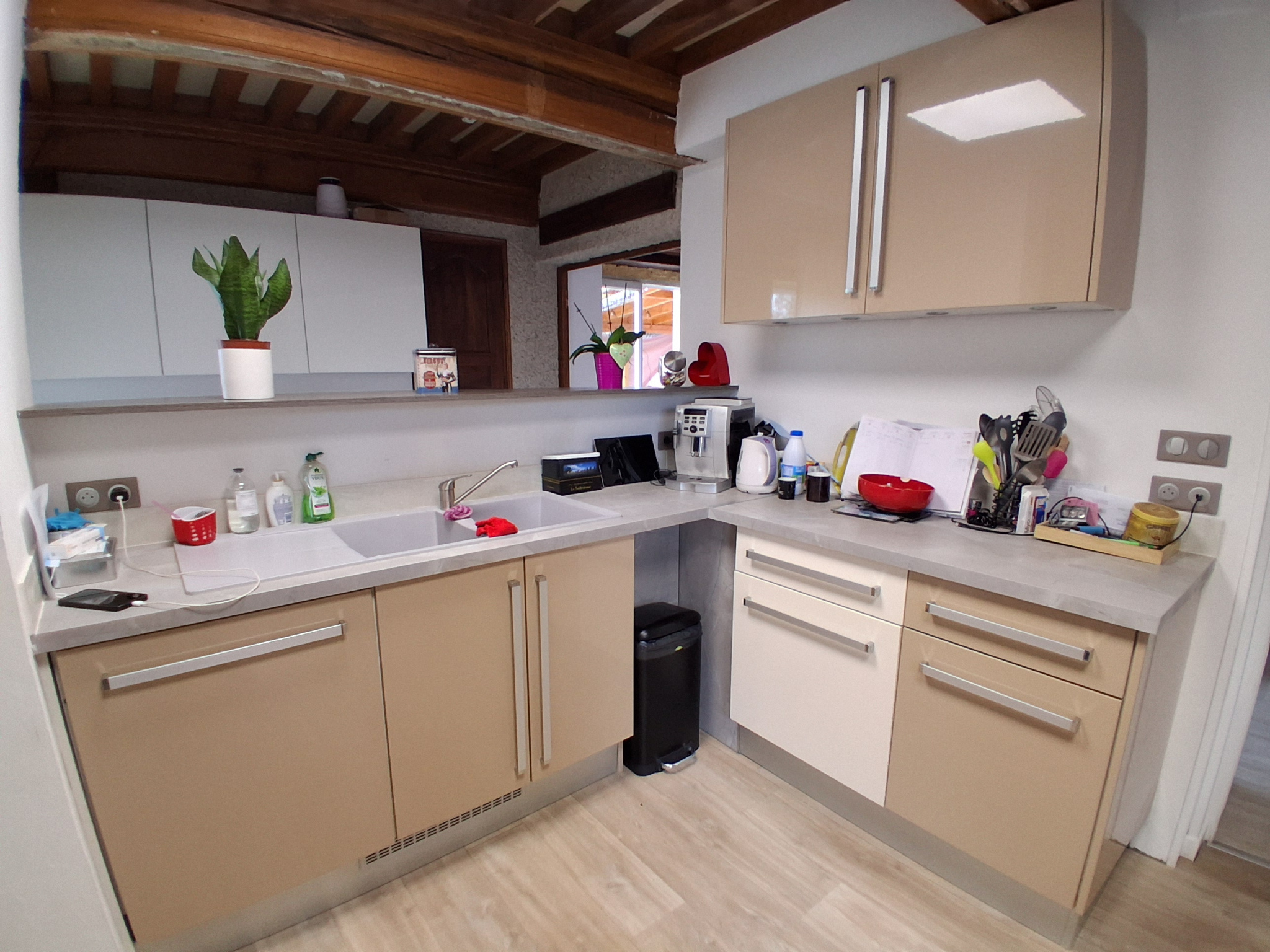 La maison principale offre de très beaux volumes. Au rez-de-chaussée, vous trouverez une cuisine équipée fonctionnelle et chaleureuse, un cellier attenant, un vaste séjour double lumineux, une chambre, un bureau et des toilettes séparées.
