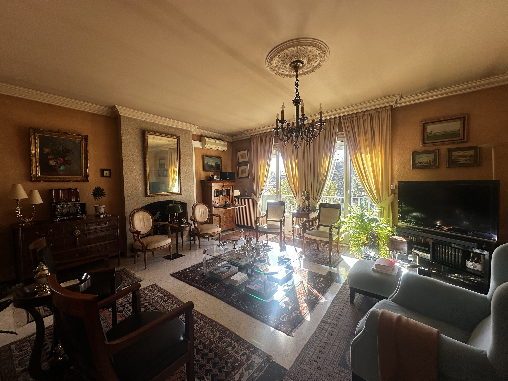 Séjour plein sud avec cheminée et balcon