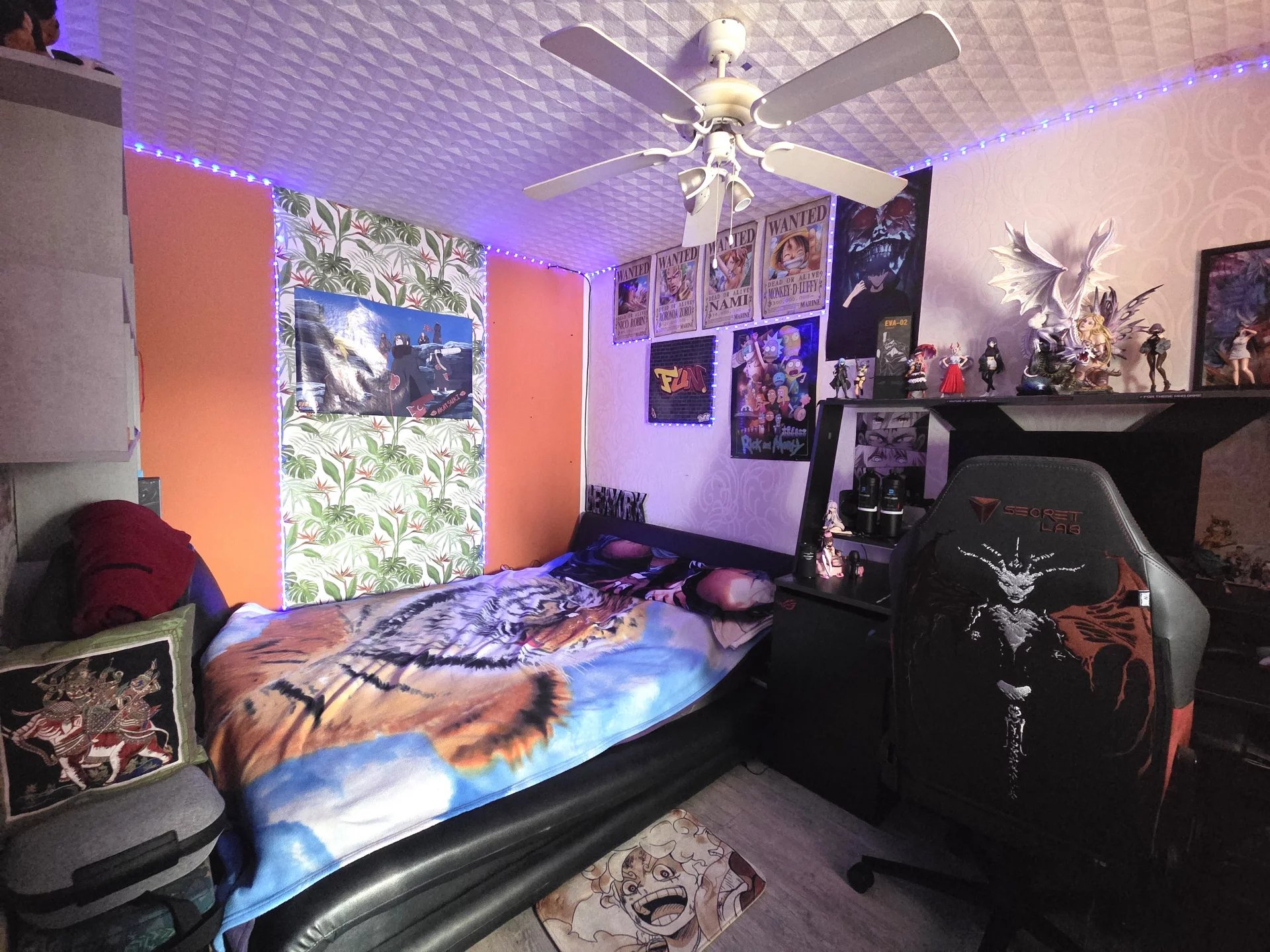 Une salle de bains en bon état, un WC séparé, un garage et un abri de jardin complètent l’ensemble.