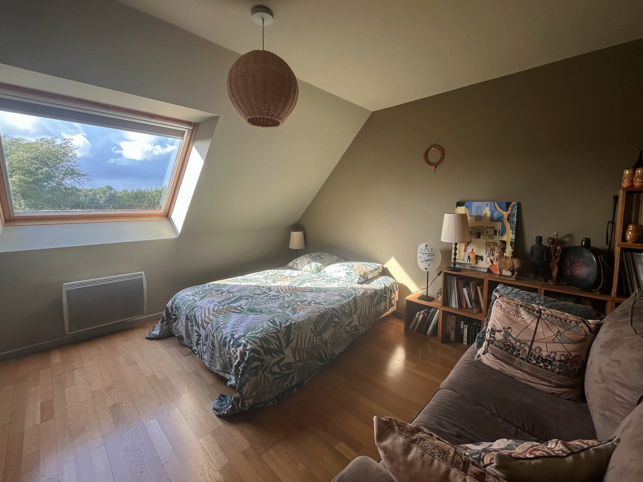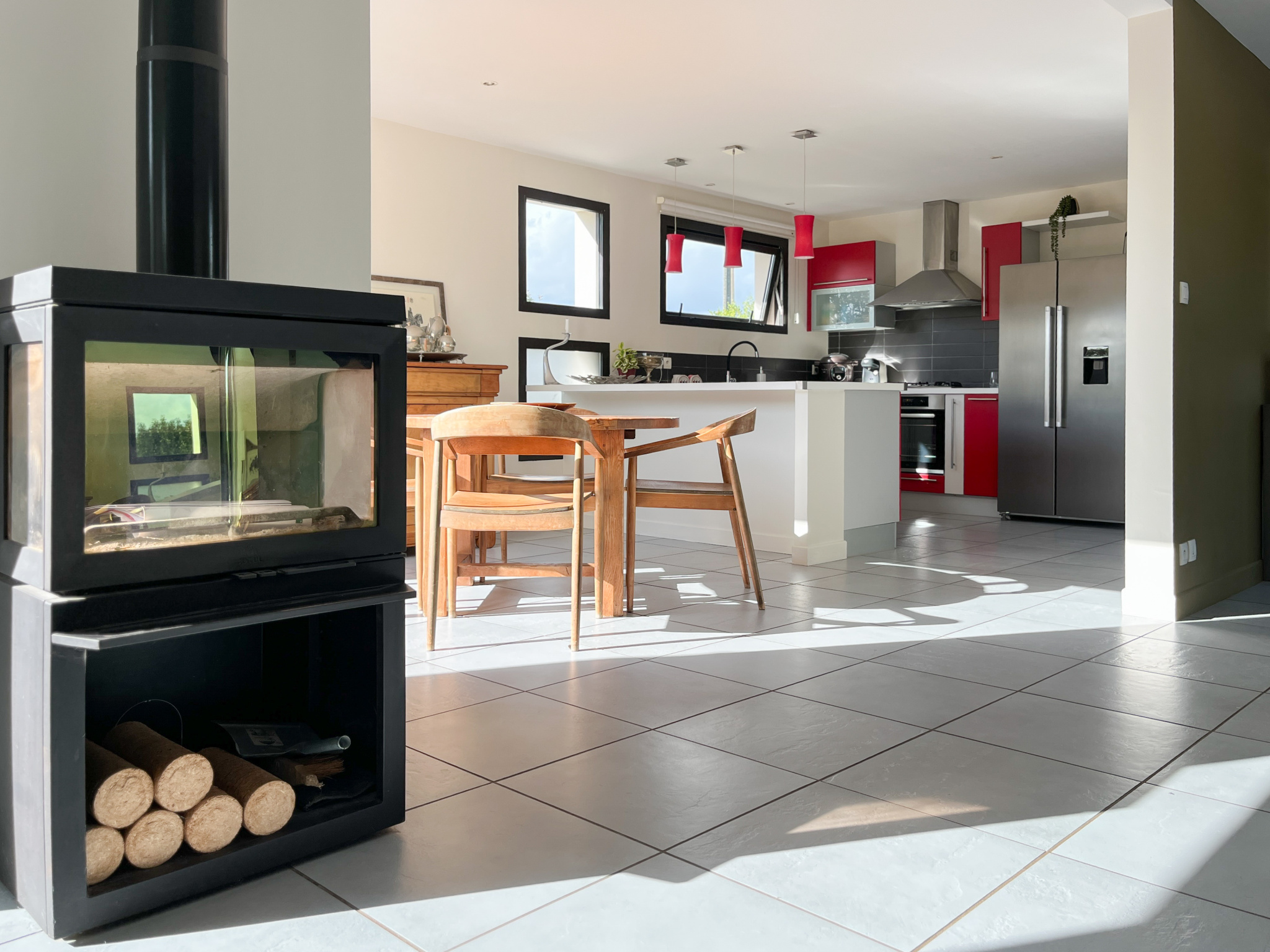 Dans un cadre paisible en campagne, à moins de 5 minutes des commodités, venez découvrir cette maison d'architecte de 2005 de plus de 130m2 composée au rez-de-chaussée, d'une grande entrée avec placard, un séjour lumineux avec poêle à bois, une cuisine ouverte avec un accès sur une arrière cuisine/buanderie, une suite parentale et WC. Deux belles chambres à l'étage, une salle de bains avec WC, ainsi qu'une mezzanine-bureau spatieuse. Un cellier, un abri voiture surmonté d'un grenier offrant un beau potentiel d'aménagement avec possibilité d'accès direct depuis l'étage, ainsi qu'une terrasse bois intimiste, complètent ce bien. Beau jardin arboré paysagé de 1000m2, piscinable, entièrement clos et sans vis à vis. Elle n'attend plus qu'une nouvelle famille !