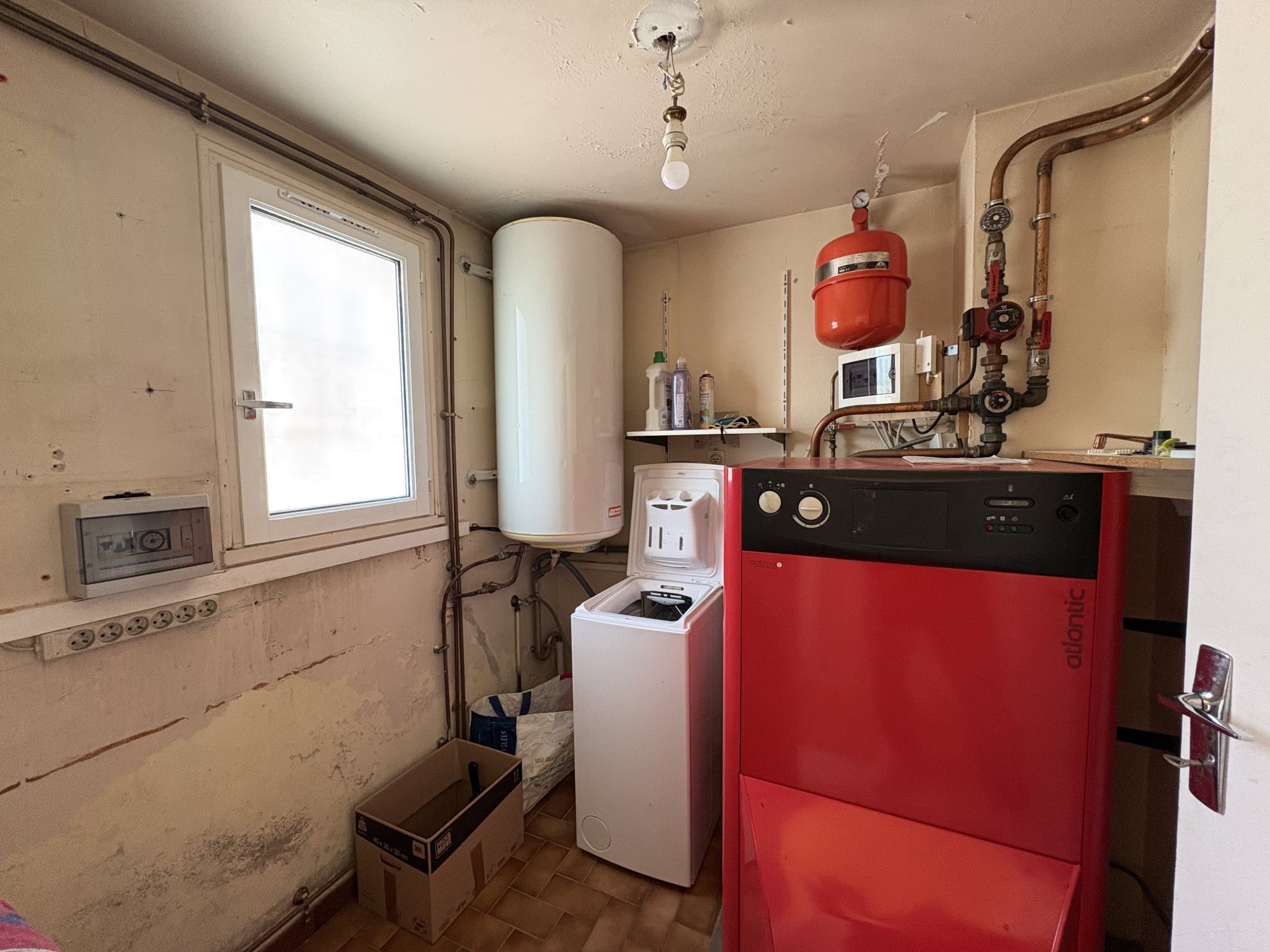 Au rez-de-chaussée : une cuisine, un salon-séjour lumineux, une salle d'eau avec WC et une chaufferie.