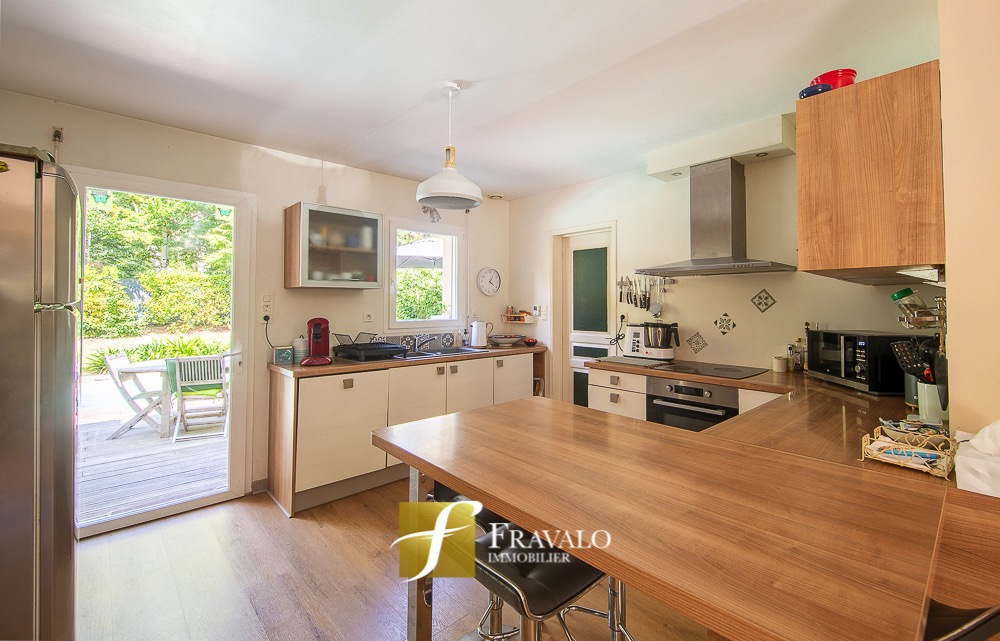 Située dans un secteur résidentiel proche du bourg, jolie maison des années 2000, lumineuse et fonctionnelle. Elle comprend une entrée ouvrant sur le salon-séjour avec poêle, une cuisine ouverte aménagée-équipée, une buanderie, une chambre avec salle d'eau, un wc et un garage. L'étage dessert quatre belles chambres et un salle de bains avec wc. La maison est édifiée sur un terrain clos d'environ 560 m2 avec piscine chauffée, terrasses bois et deux abris de jardin. Estimation des coûts annuels d'énergie pour un usage standard du logement: entre 1350 EUR et 1890 EUR (abonnement compris). Les informations sur les risques auxquels ce bien est exposé sont disponibles sur le site Géorisques : georisques.gouv.fr