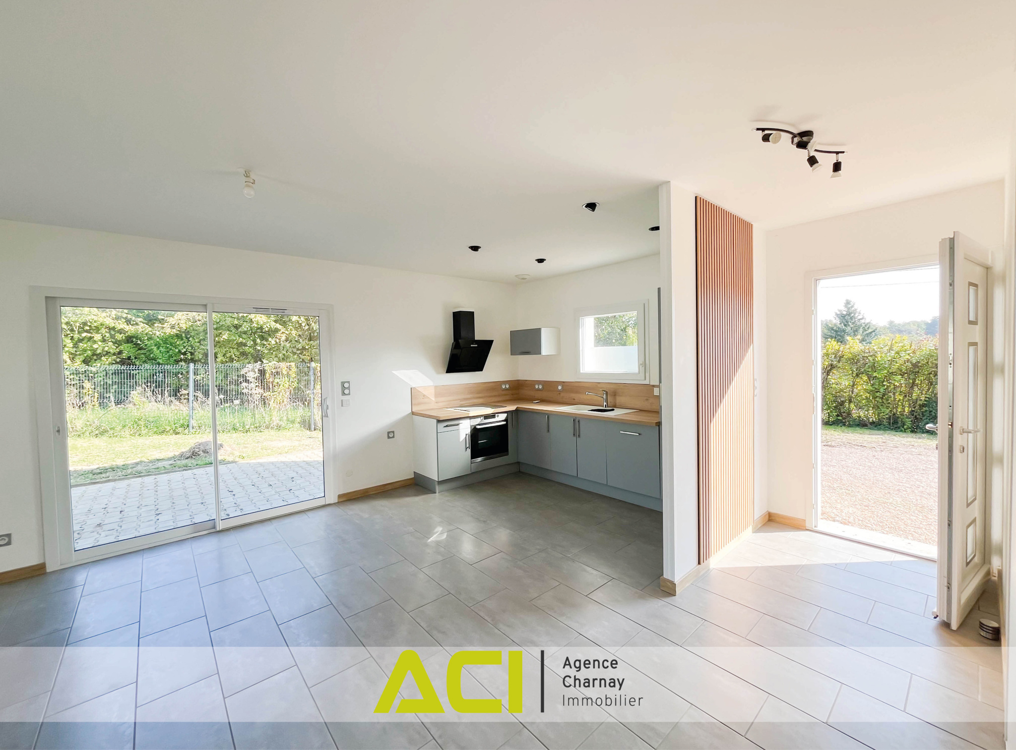 Située à 5 minutes en véhicule des commodités du centre, dans un secteur calme avec accès rapide aux principaux axes, belle maison mitoyenne de plain-pied d'une surface habitbale d'environ 73 m2, composée comme suit : entrée avec placard, cuisine équipée ouverte sur belle et lumineuse pièce à vivre d'environ 35 m2 donnant sur terrasse exposée Est, dégagement desservant deux belles chambres dont une avec placard, salle d'eau avec douche italienne et wc, chaufferie / buanderie et grand garage motorisé d'environ 20 m2, l'ensemble édifié au cours de l'année 2018 sur une parcelle d'environ 400 m2 avec cour et jardin clos.