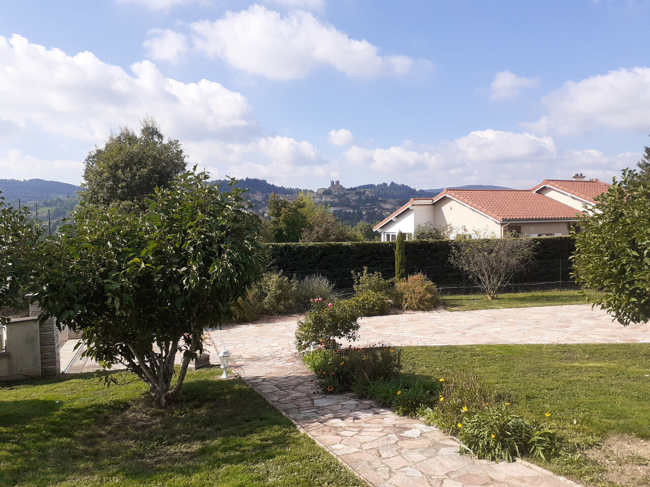 A 2 kms d bourg de Saint Bonnet le Château Dans endroit tranquille et verdoyant, avec une très belle vue.