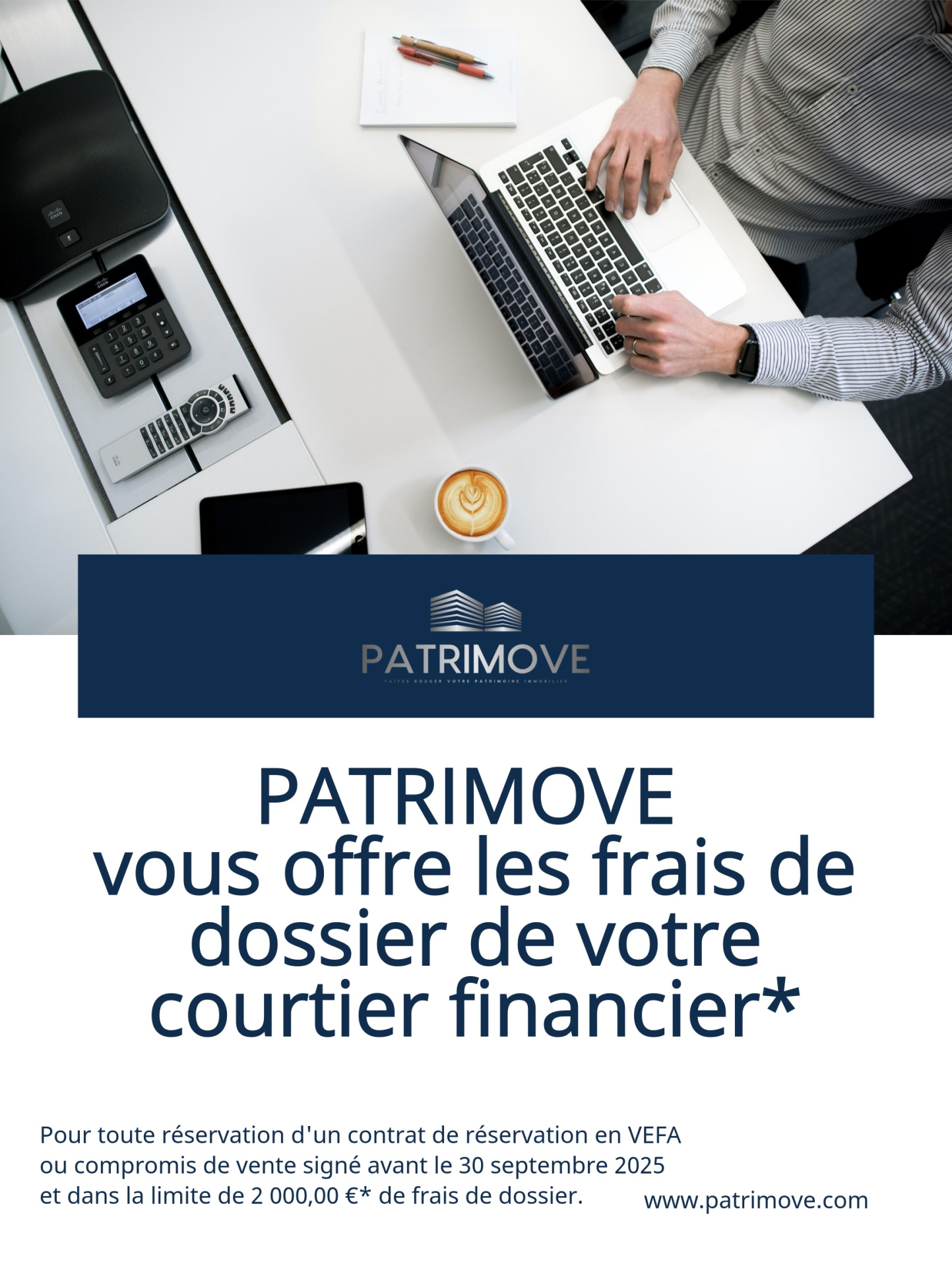 * POUR TOUTES RÉSERVATIONS AVANT LE 30 NOVEMBRE 2025, PATRIMOVE VOUS OFFRE LES FRAIS DE DOSSIER DU COURTIER FINANCIER.
