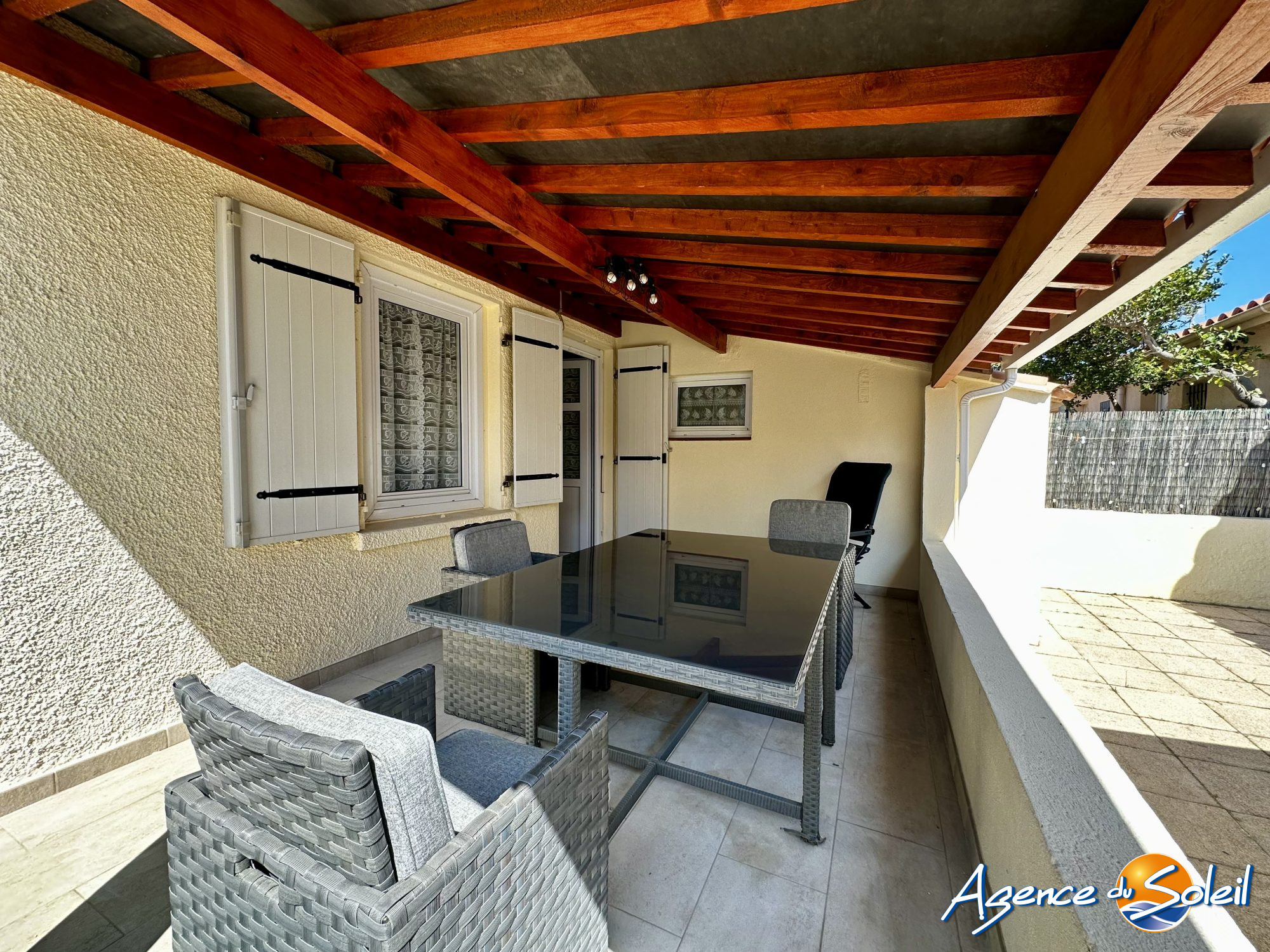 Venez découvrir cette belle Canétoise plain-pied idéalement située secteur Canet Sud. Sur trois faces, elle vous offre un cadre de vie idéal à quelques minutes à pied de la plage! Beaux extérieurs, stationnement pour deux véhicules, grande terrasse couverte, espace barbecue. A l'intérieur, pièce à vivre agréable avec cuisine équipée, deux chambres et salle d'eau/wc, le tout climatisé. Pour plus de confort, à l'arrière de la maison se trouve deux pièces supplémentaires et une autre salle d'eau/wc. A visiter rapidement au 04.68.80.37.43 AGENCE DU SOLEIL CANET