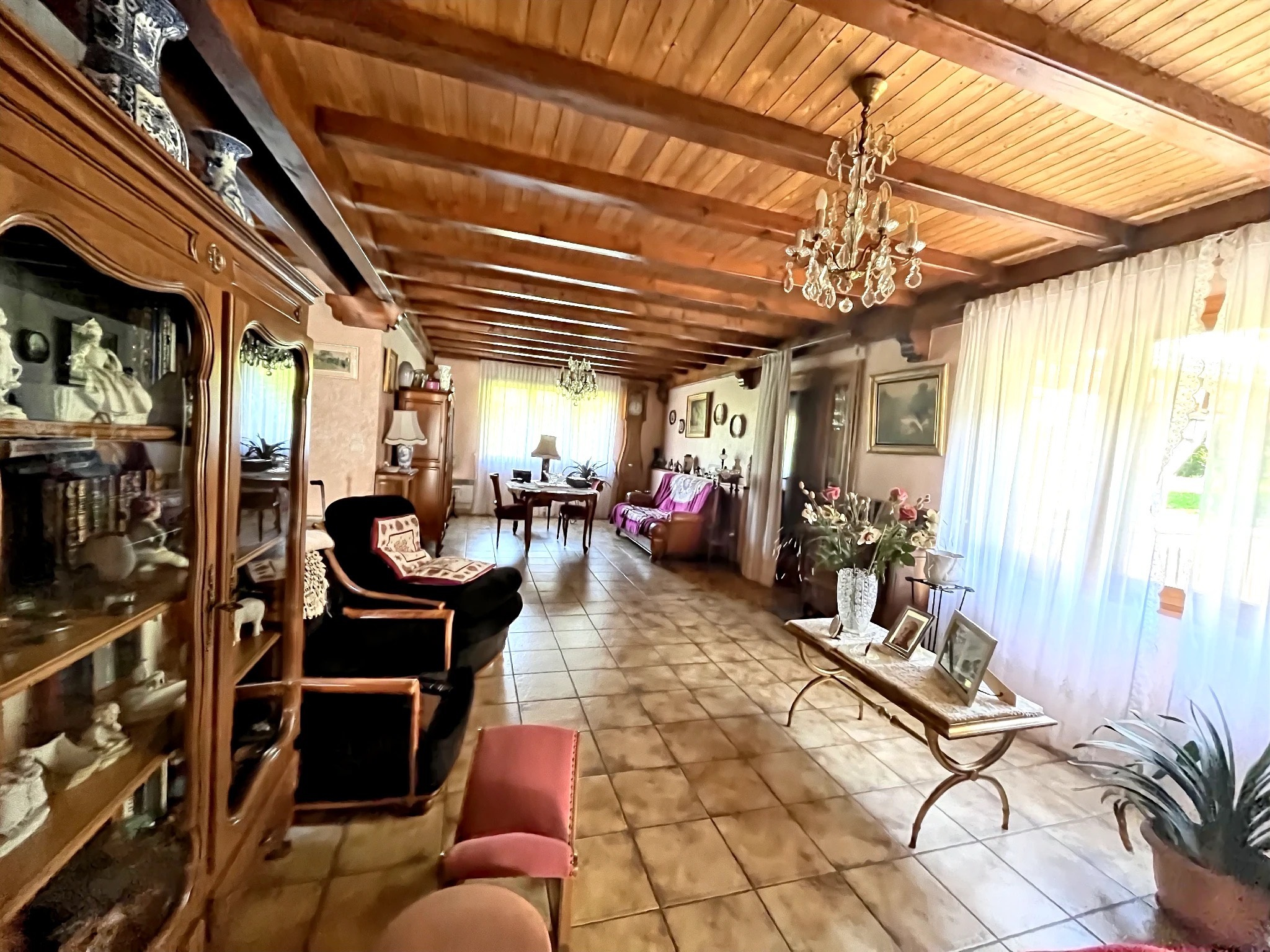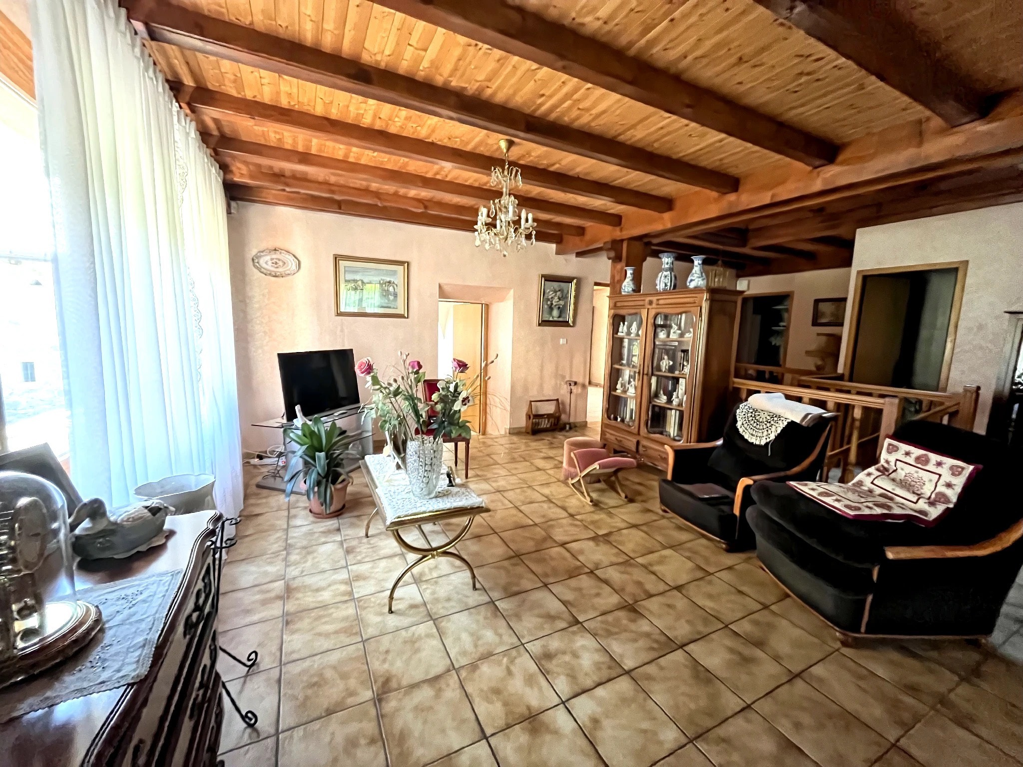Sur deux niveaux, elle est composée actuellement de 3 chambres, deux grandes pièces de vie ( dont une avec accès à la terrasse couverte ), une cuisine aménagée, cave, buanderie, grand garage, atelier, terrasse ( couverte ), le tout sur un terrain de 631 m2.