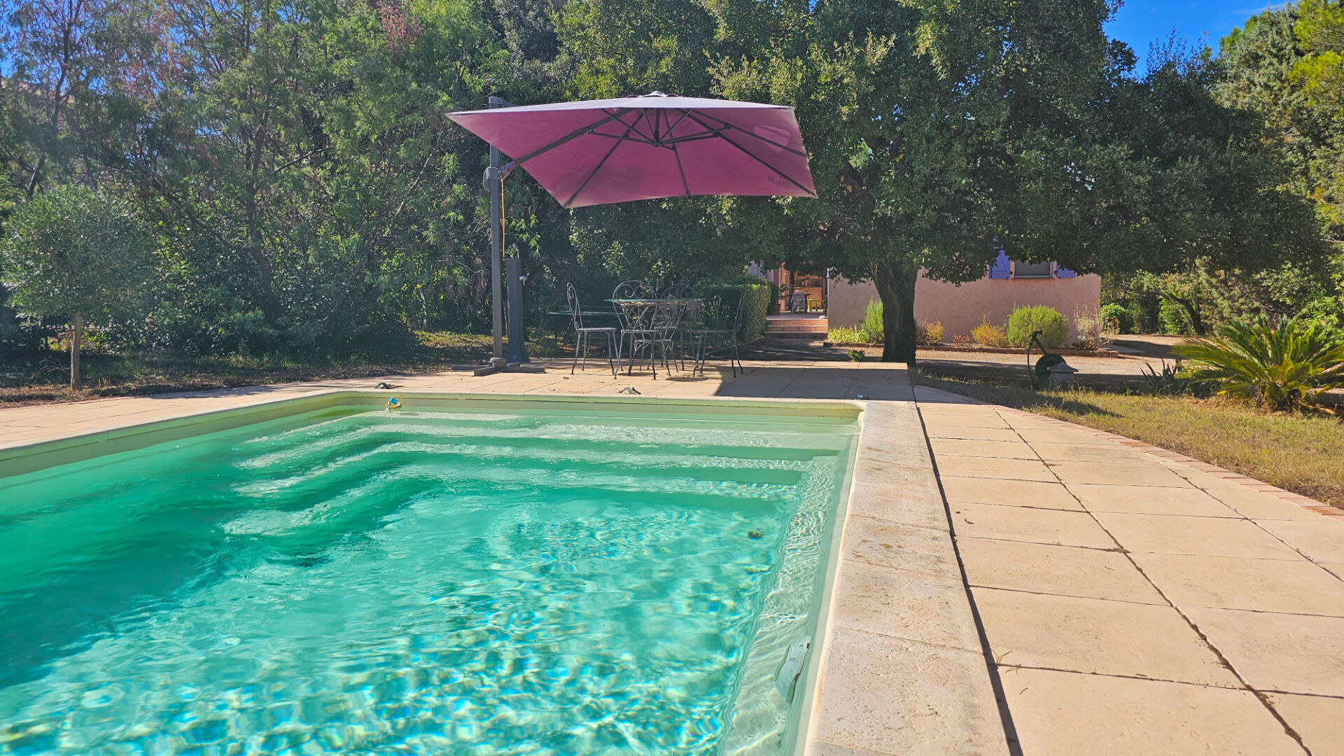 VILLA PLAIN PIED 133M² SUR 1800M² AVEC GARAGE ET PISCINE SUR LE CANNET DES MAURES - Sur la commune du Cannet des Maures, dans un quartier recherché, accès facile, à 5mn des commerces et des grands axes de communication. Villa de 133m² dont 113m² de plain pied avec pièce de vie de 40m², 3 chambres, 2 salles d'eau, dont une avec baignoire et douche, 2 wc, et la 4eme chambre mansardée de 20m² en demi palier. Le terrain de 1800m² en zone UCB est plat, clos et arboré. Il se compose de différents espaces dont celui de détente qui reçoit une belle piscine de 10x4. Un grand garage de 40m² accessible par la maison, d'un abri voiture. Cette villa raccordée au tout à l'égout est construite en béton cellulaire, isolation des combles en laine minérale, climatisation et cheminée avec insert, Menuiserie en PVC double vitrage. et dispose de panneaux solaires. Classe énergie C. Visite virtuelle disponible sur demande.